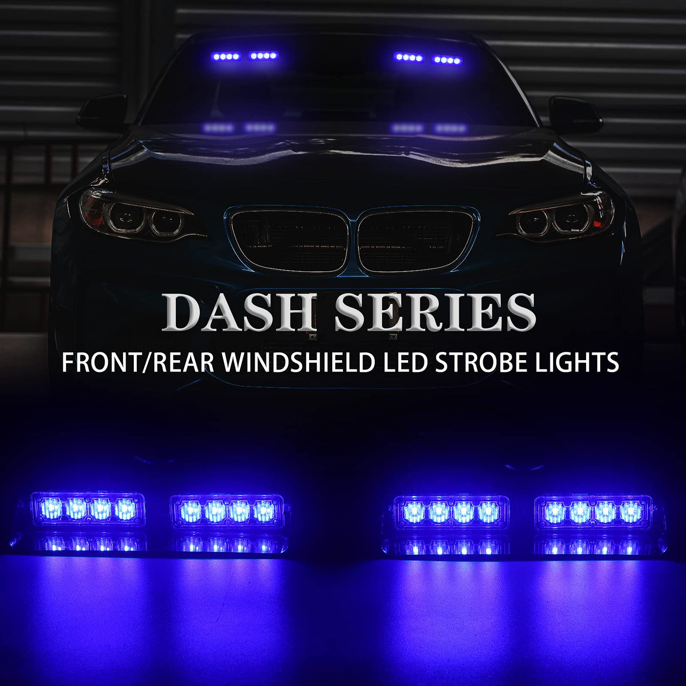 Xridonsen 2 In 1 Blue Emergency Dash Strobe Lights Warning Safety Flashing Interior Windshield Lights W/Suction Cups For Ambulan