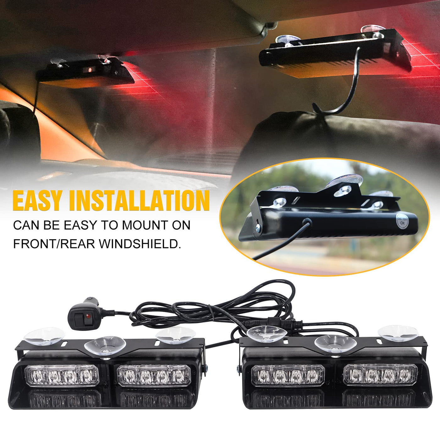 Xridonsen 2 In 1 Dash Emergency Strobe Lights Interior Windshield Lights Red Amber Warning Safety Flash Law Enforcement W/Suction Cups For Volunteer Police Vehicles, Trucks (2×7.16 Inch, 16 Led)