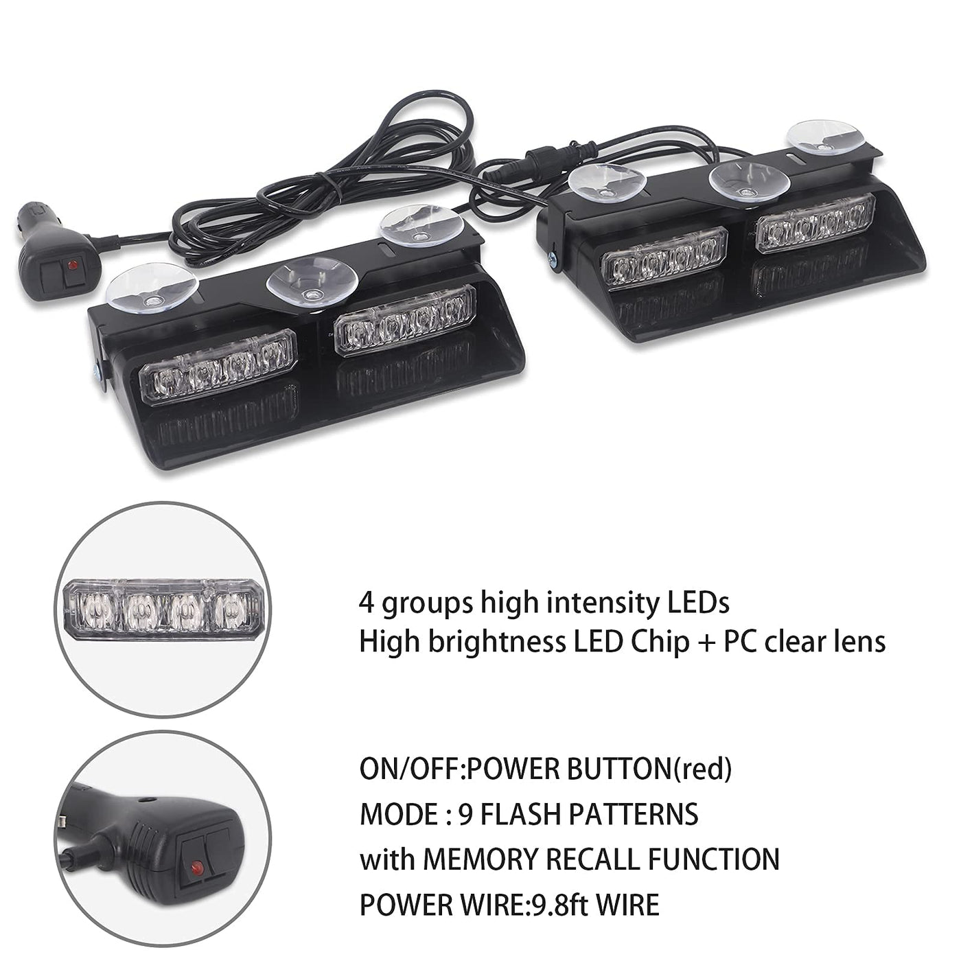 Xridonsen 2 In 1 Emergency Dash Strobe Lights Interior Windshield Lights Deck Split Amber White Warning Safety Flashing Lights W/Suction Cups For Construction Vehicles, Trucks (2×7.16 Inch, 16 Led)