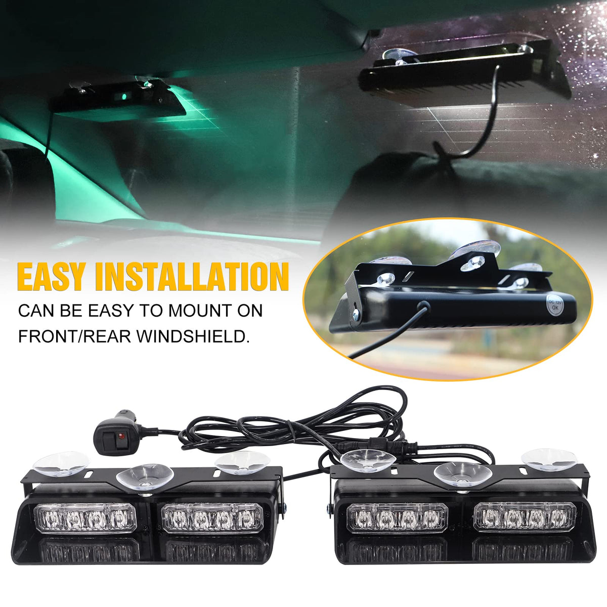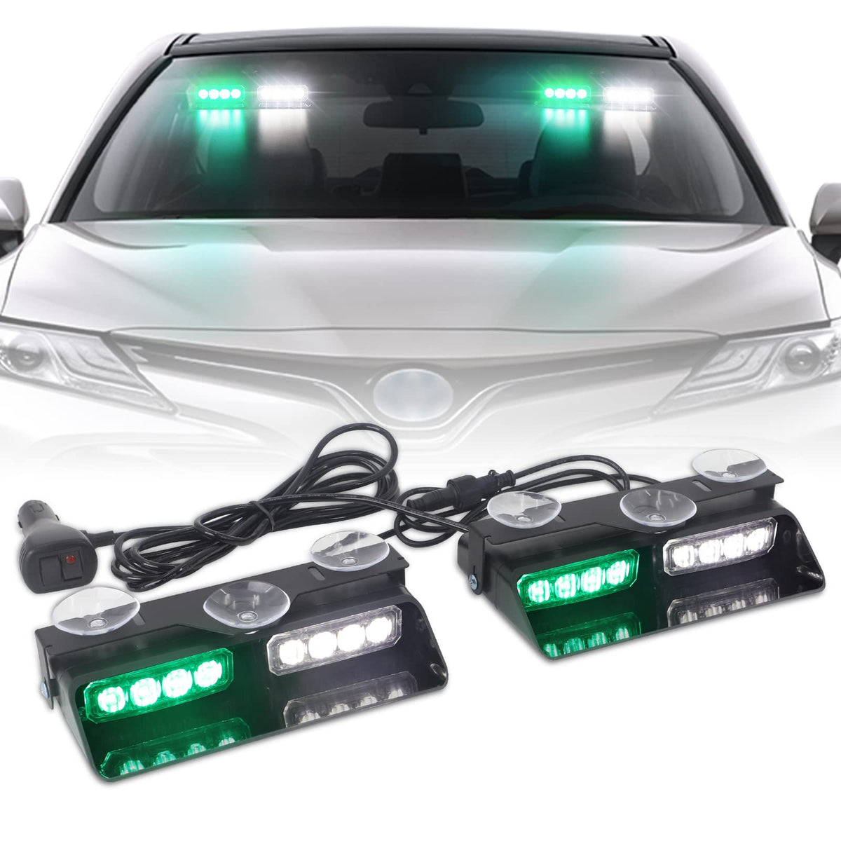 Xridonsen 2 In 1 Green White Dash Emergency Strobe Lights Interior Windshield Warning Safety Flashing Lights W/Suction Cups For