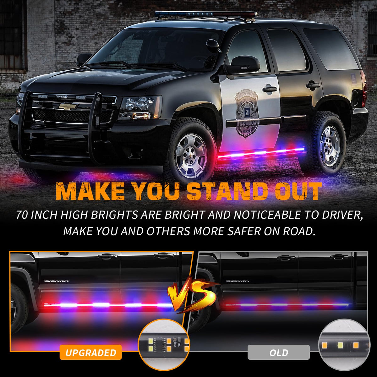 Xridonsen 2Pcs 70 Inch Emergency Truck Police Lights Strip 864 Led Running Board Strobe Lights Red Blue Police Lights Flashing W