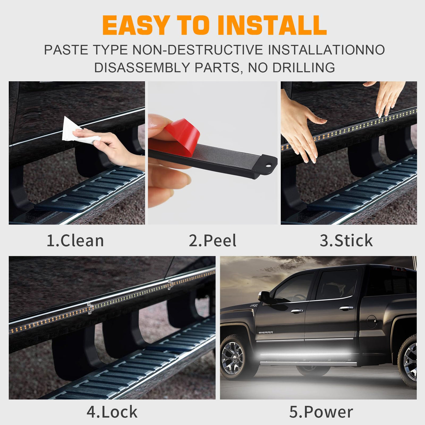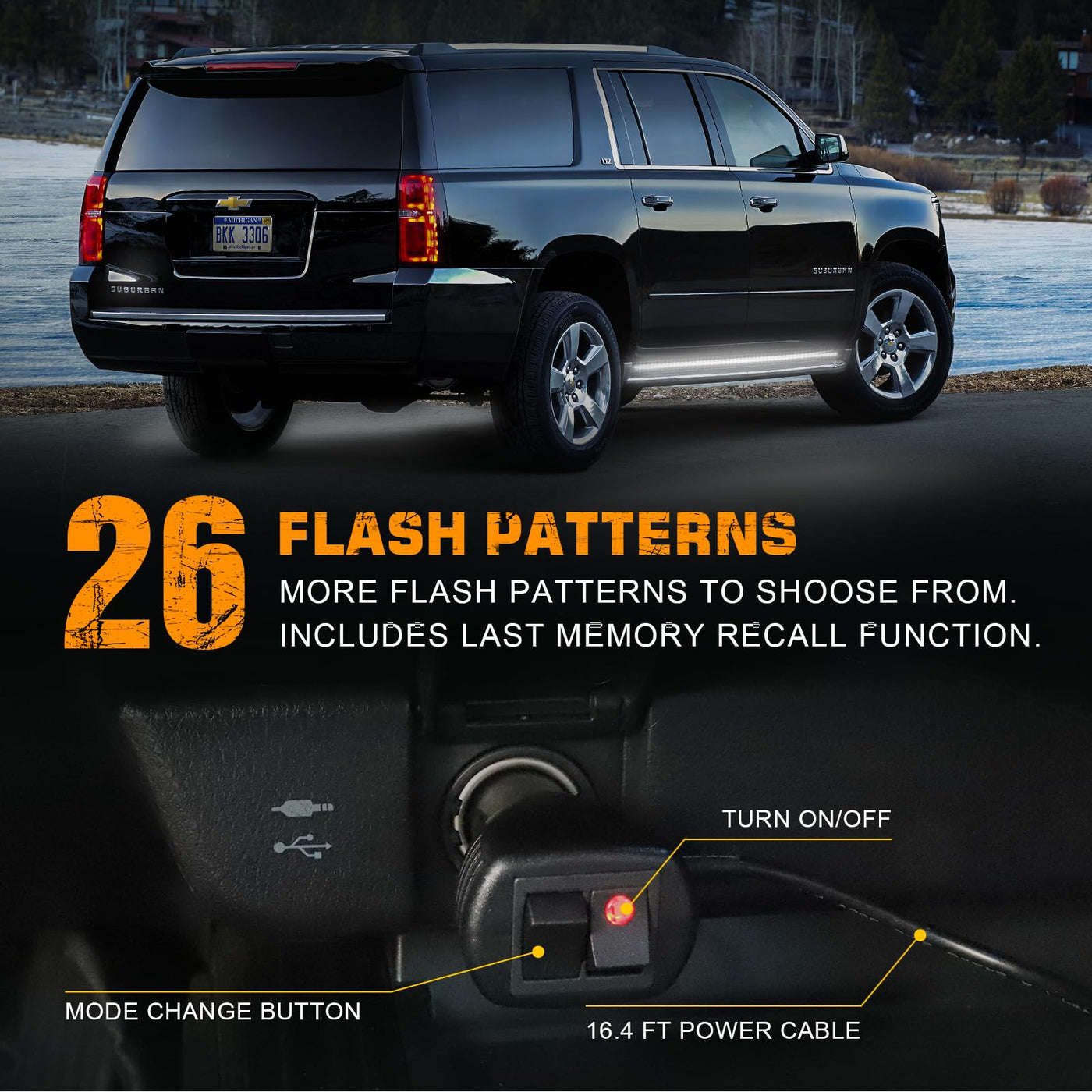 This blue white Running Board emergency lights is equipped with 864 high brightness LEDs. Even during the daytime, the truck lights are bright and noticeable to the driver and effective for any warnings and emergencies.