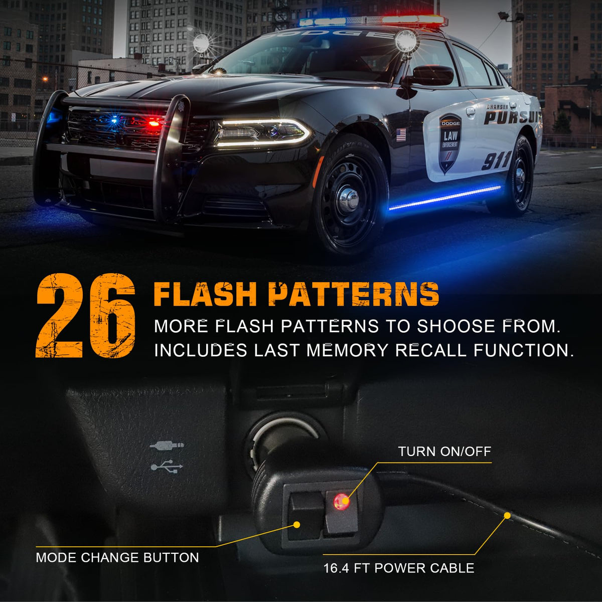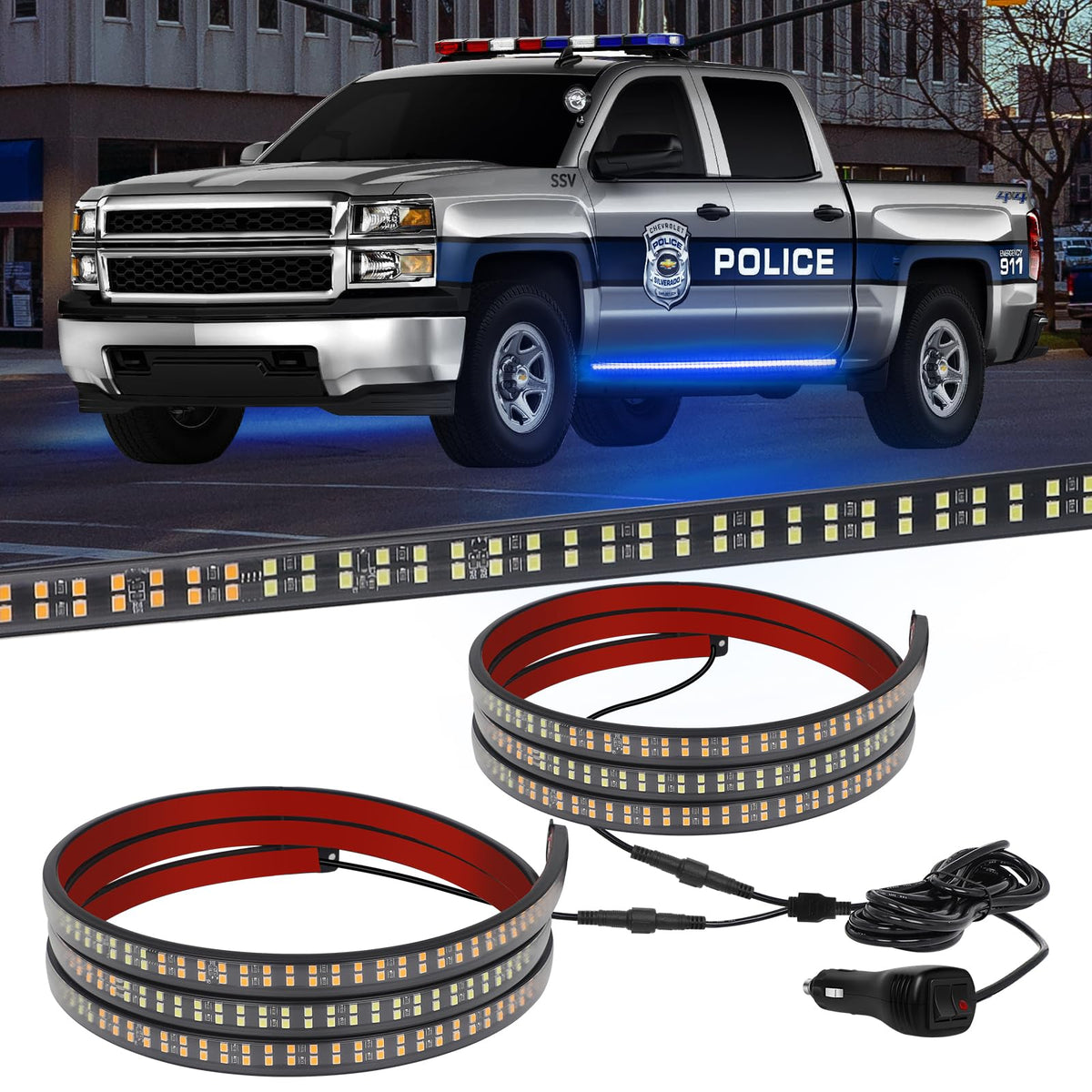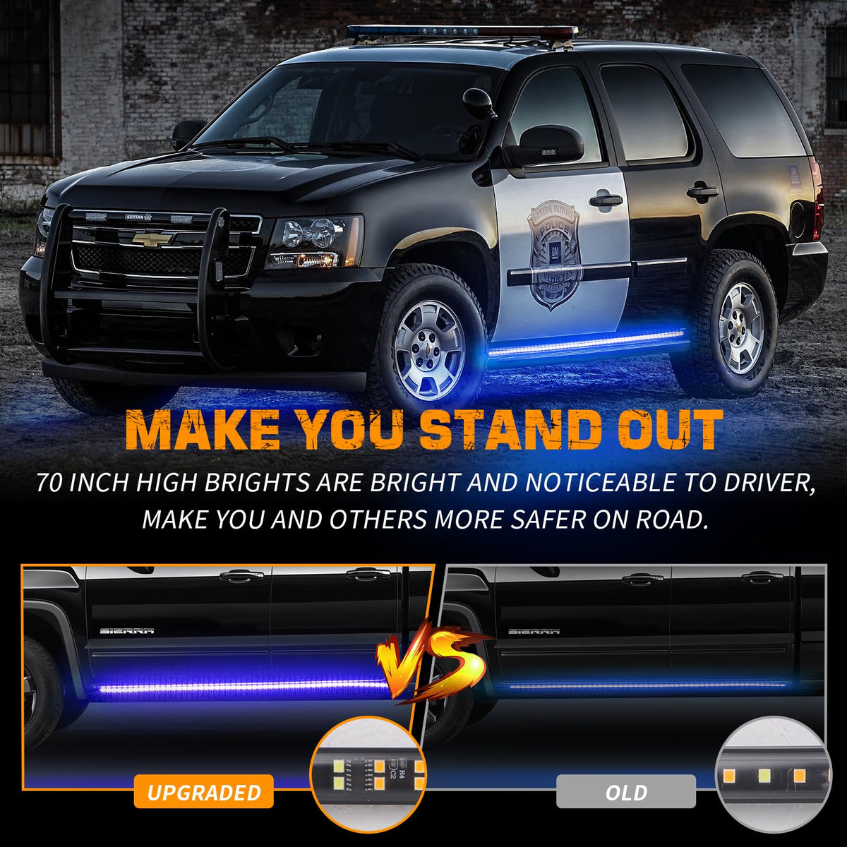 Xridonsen 2Pcs 70 Inch Truck Blue Emergency Lights Strip 864 Led Running Board Strobe Lights Flashing Warning Hazard Safety W/Wa