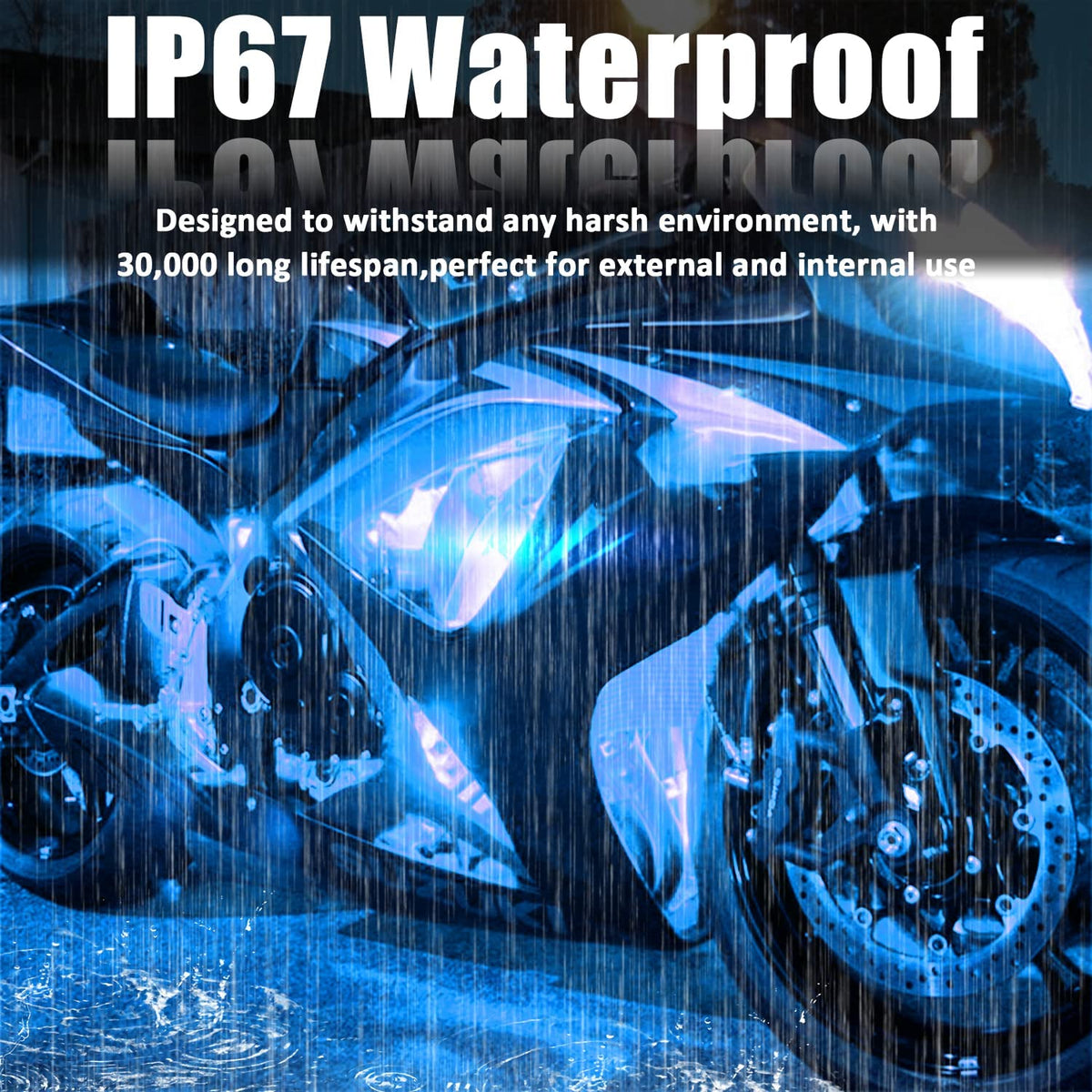 Q: Are these LED strip lights waterproof?A: Yes, the XT AUTO LED Strip Lights have an IP67 waterproof rating, making them suitable for both indoor and outdoor use, even in wet conditions.