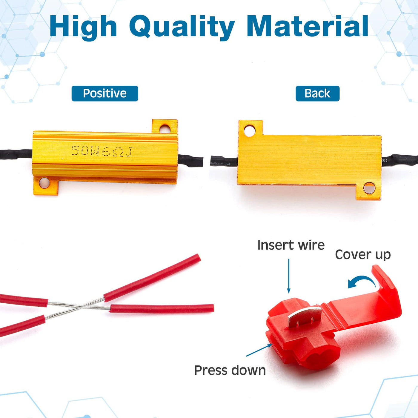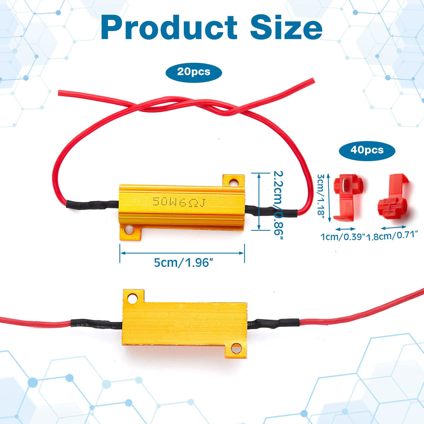 Features: Turn Signal Resistor Is Finely Designed To Serve You, Bringing A Fluent Use Experience. Led Flasher Resistor Is Simple And Reliable To Use, Enough To Replace And Share, Light In Weight And Easy To Carry, Providing A Lot Of Conveniences. Specifications: Material: Alloy Color: As Pictures Shown Size: As Pictures Shown Package Includes: 20 X Led Resistor Turn Signal 40 X T Tap Wire Connectors Notes: Manual Measurement, Please Allow Slight Errors On Size. The Color May Exist A Slight Difference Due To Different Screen Displays. Please Keep Away From Small Kids In Case Of Choking Risk.