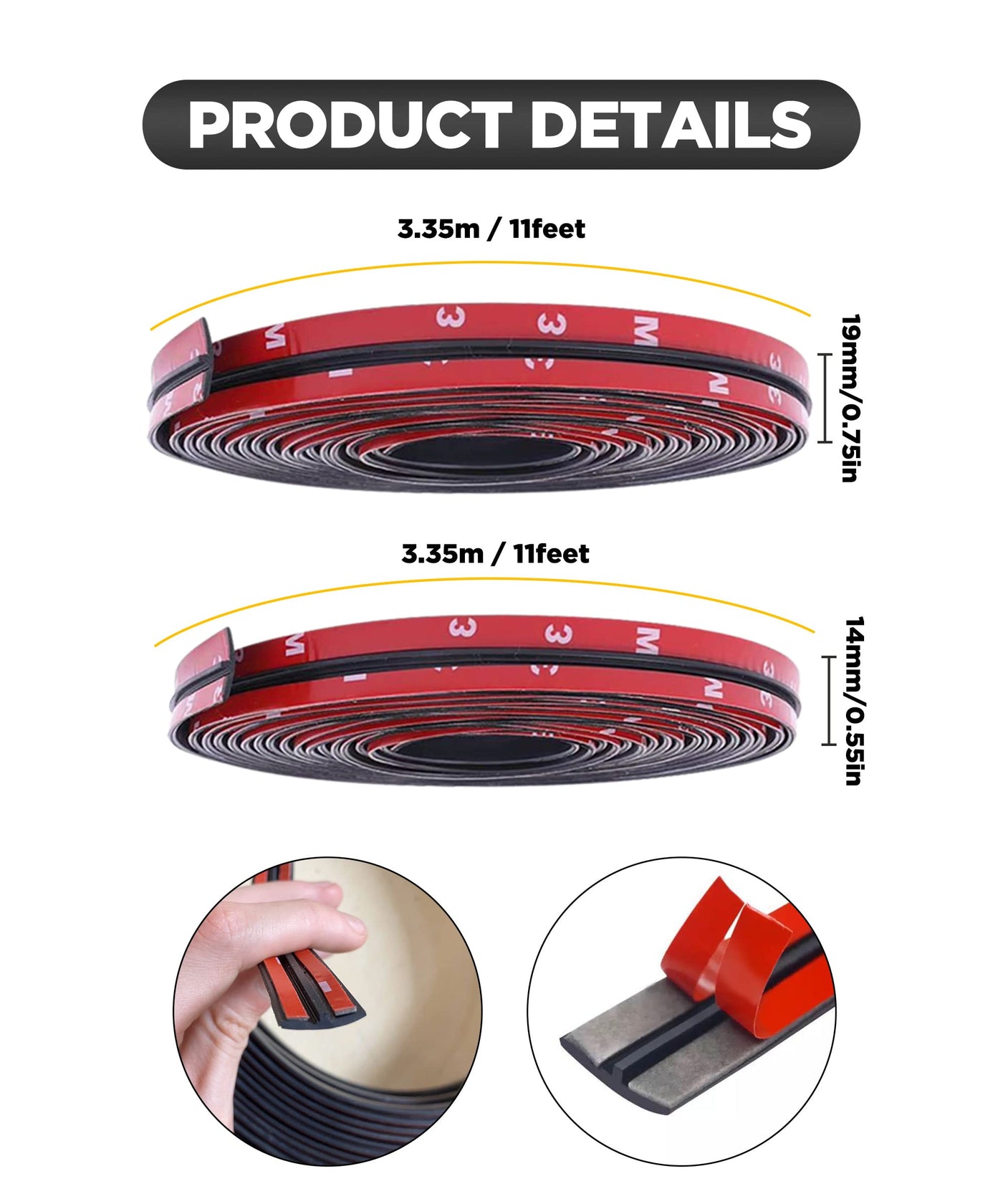YAKEFLY 2 Pieces Windshield Rubber Seal Windshield Trim Stripping,22 Ft Windshield Rubber Seal,Car Weather Stripping T Shape Sea
