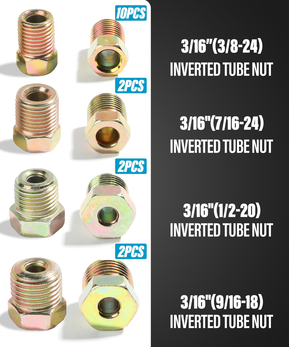 YAKEFLY 25 ft 3/16 Copper Coated Brake Line Kit with 16 Fittings and 4 Unions Brake Line Fittings,Brake Line Double & Single Fla