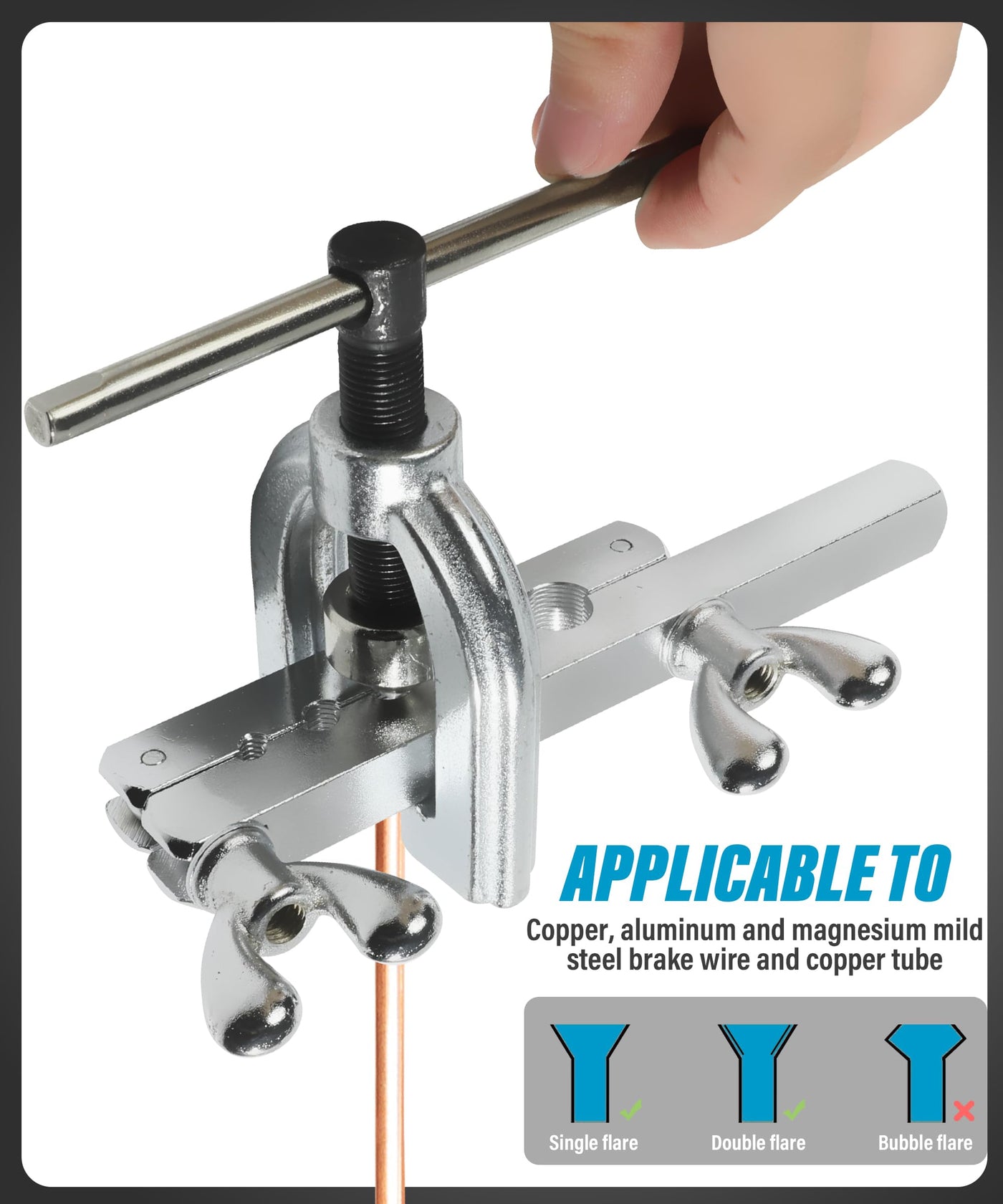 Yakefly 25 Ft 3/16 Copper Coated Brake Line Kit With 16 Fittings And 4 Unions Brake Line Fittings,Brake Line Double & Single Flaring Tool Kit,Fits For Most Hydraulic Braking Systems,Fuel Systems,Etc