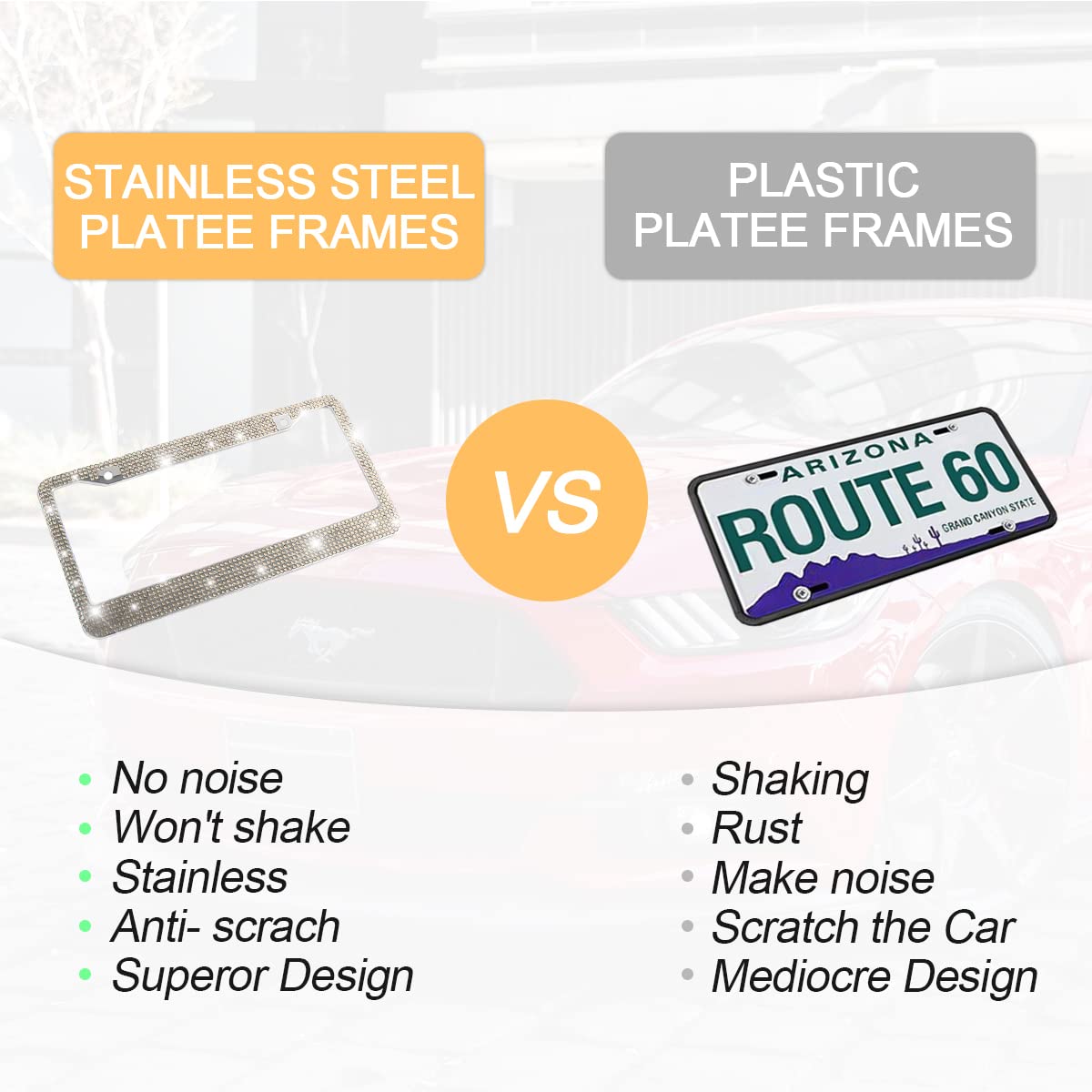 Yalok Bling Car License Plate Frame, Sparkly Rhinestone Stainless Steel License Plate Cover/Holder, Universal For Most Cars, Suvs, Vehicles With Screw Set, Auto Accessories For Women (Light Gold)