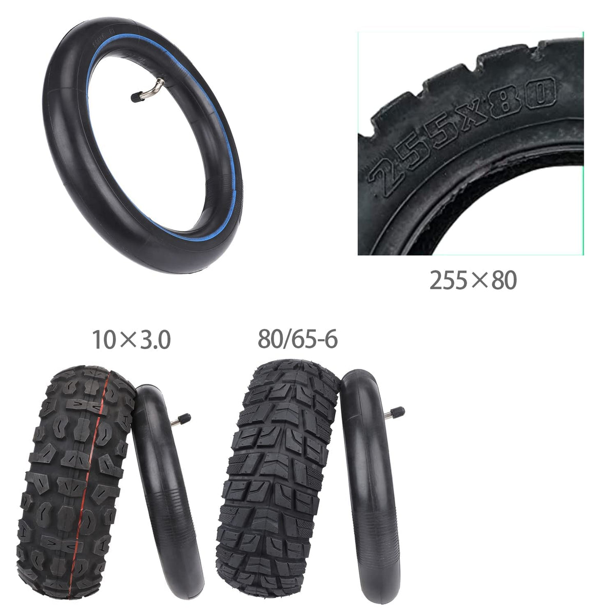 Ybang 80/65-6 10X2.5 Inner Tube Replacement 10 Inch 255 * 80 For Kugoo M4 Pro For Speedual Zero 10X Tire Tire With Elbow Valve Thickened Widened (2 Pcs)
