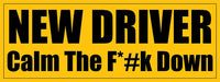 Yellow New Driver Calm The F*#k Down Bumper Sticker (Funny Safety Student Vinyl Decal for Cars, Trucks, Vans Made in The USA (3