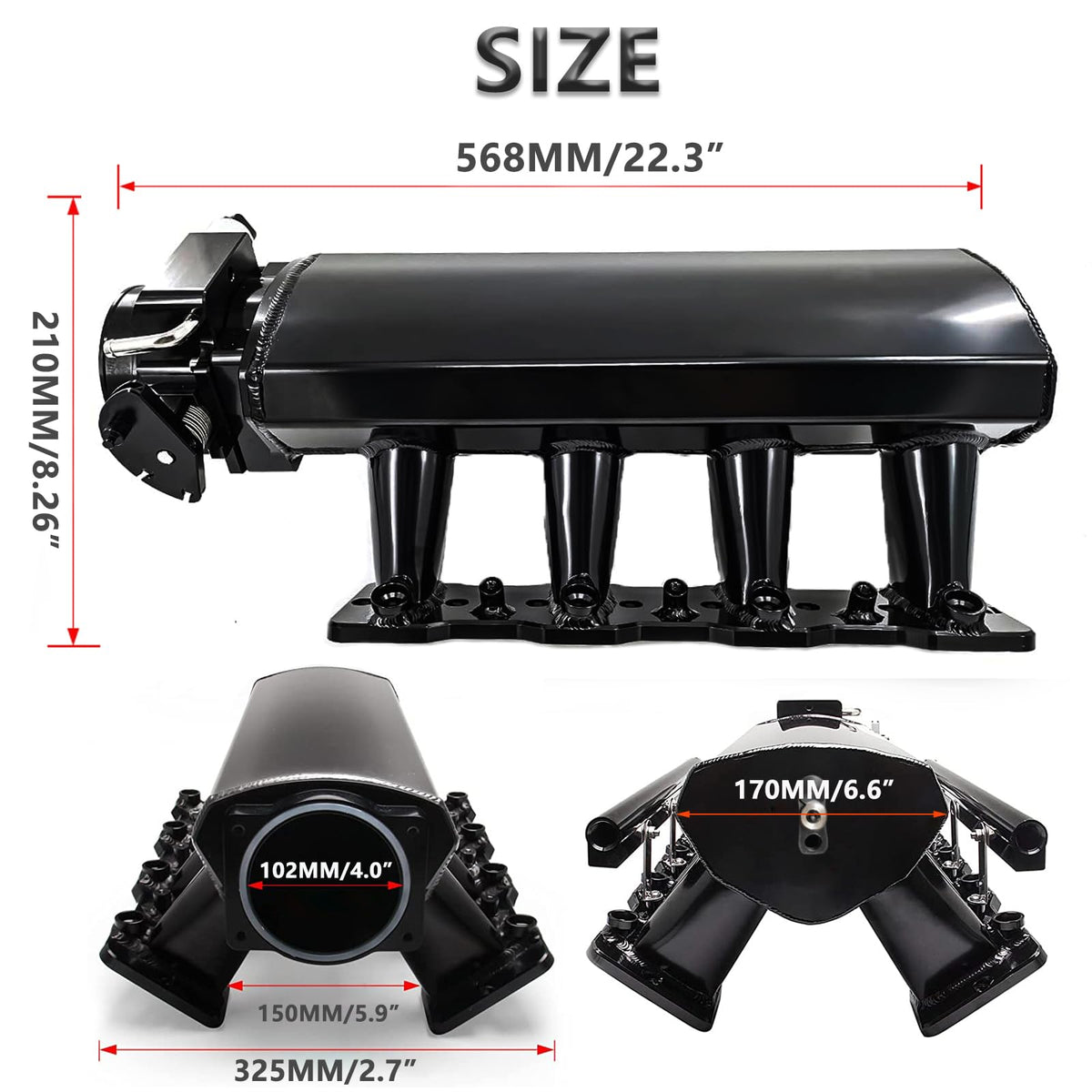 YESHMA For LS LS1 LS2 LS6 Intake Manifold with Throttle Body Compatible with Chevy 4.8L 5.3L 5.7L 6.0L (102MM Black)