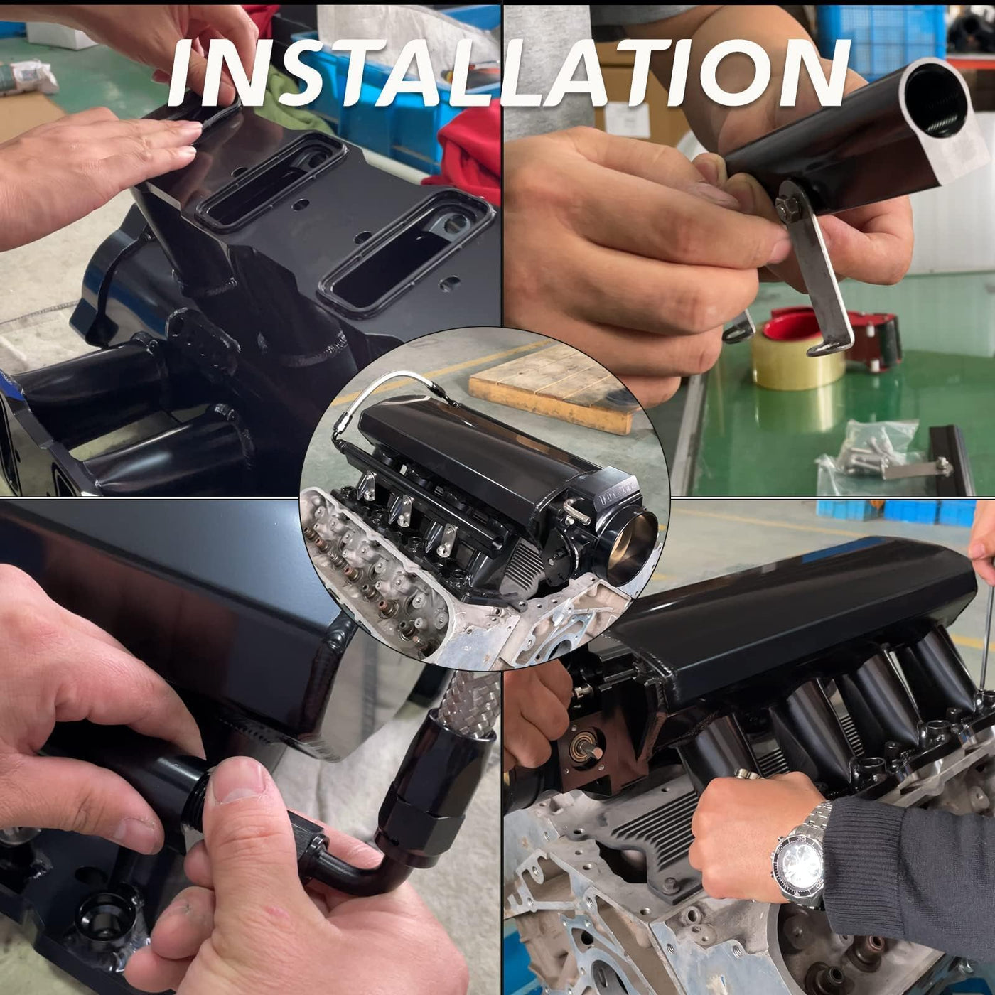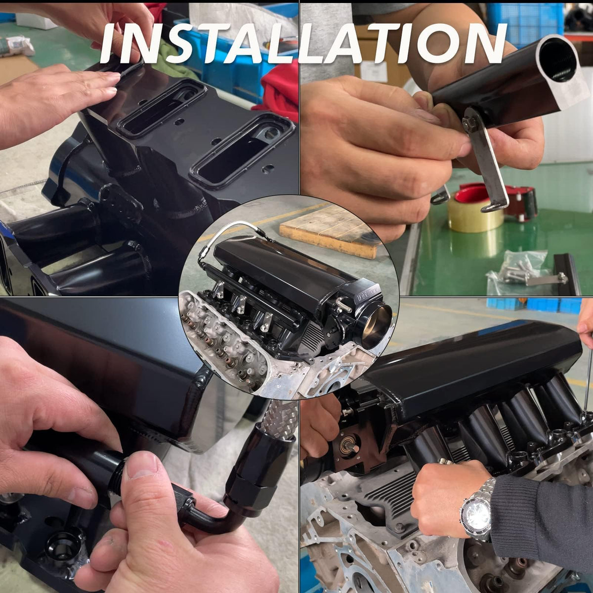 Name: Intake Manifold Description: Intake Manifold Height: 8.26 inches (approx 0.3 inches higher than stock) Intake total length: 19.2 inches Material Thickness: 3mm Fuel Rail Fitting Thread: 6AN to 8AN Vacuum Port Fittings: 1/8 NPT to 1/4, 5/16, 7/16 hose end, 1/4 NPT x 1/2 hose end MAP Sensor Port: M12 x 1.25 (Fit for 12592525 or equivalent LS3 Style) Material: T6061 Sheet Aluminum Accessories: -Gasket and Hardware -High Flow Fuel Rails -Braided Fuel Crossover Line -Throttle Body Application: Fits: For LS Based Engines with Cathedral Port Heads Shape; For Original LS1/LS2/LS6 Engine. For LS1 LS2 LS6 (6.0L 5.6L 5.3L 4.8L) For Chevrolet Small Block V8 GEN. III/IV(LS-Based) 4.8L / 293 CI (For LR4) 5.3L / 325 CI (For L33,L59,LM4,LM7) 5.7L / 346 CI(For LS1,LS6) 6.0L / 364 CI(For LQ4,LQ9,LS2) Models: Compatible with 1997-2004 Chevrolet Corvette Compatible with 1998-2002 Pontiac Firebird Formula, Trans AM Compatible with 2001-2004 Corvette Z06 Compatible with 2004-2005 Cadillac CTS V-series Compatible with 2005-2007 Chevrolet Corvette Compatible with 2005-2006 Chevrolet SSR Compatible with 2006-2009 Chevrolet TrailBlazer SS Compatible with 2006-2007 Cadillac CTS V-Series Compatible with 2005-2006 Pontiac GTO Compatible with 2008-2009 Saab 9-7X Aero Throttle Body Specification: Bore Size-Back: 3.62'' Flow Rate: 1218 CFM Working pressure: 85 PSI Burst pressure: 245 PSI Short runner design
