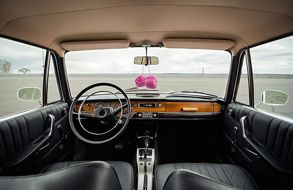 Ygmoner Pair Of Retro Square Mirror Hanging Couple Fuzzy Plush Dice With Dots For Car Decoration (Pink)