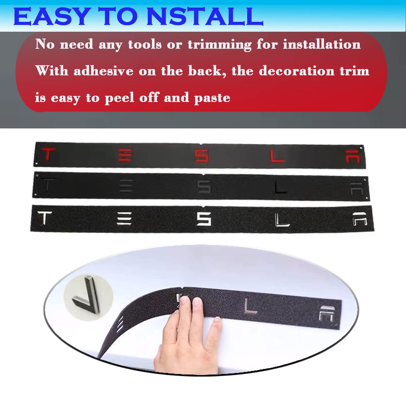 Specification: Suitable Models: Tesla Model 3 Model Y Model Y Model X Size: 20.5 inch x 1.6 inch Material: ABS Package: 1set Tailgate letters Easy to Install: Tear off the double-sided tape on the back of the product and stick it directly on the installation location Notice: 1. Please allow 1-3mm error due to manual measurement. pls make sure you do not mind before you bid. 2. Due to the difference between different monitors, the picture may not reflect the actual color of the item. Thank you! 3. Before sticking, please keep the sticking area clean and free of any moisture. Otherwise, it will affect the firmness! Installation steps: 1. Use rubbing alcohol to clean the Tailgate. Make sure there is no dust, dirt. 2. Facing the letters, turn it flat face down and remove the white paper carrier protecting the lettering adhesive. The letter will stay in place on the clear carrier. 3. Pull off the clear installation carrier and now Your car look AWESOME! Note: These inserts are car wash safe, but make sure to clean the paint before installation and they won't come off.