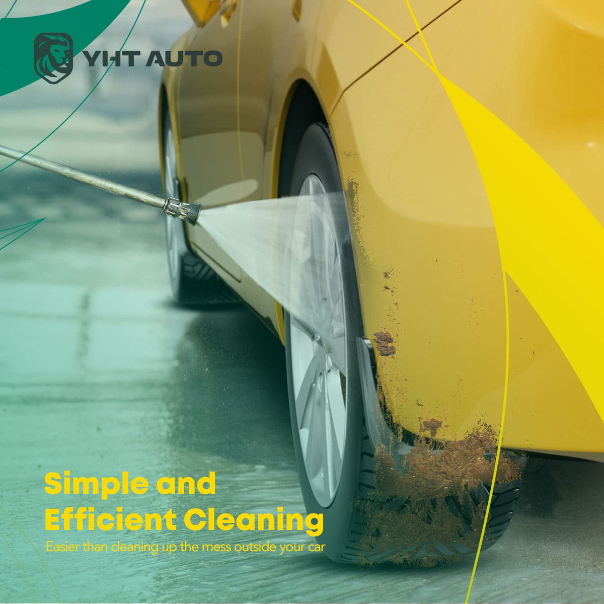Q: How do these mud flaps help protect my vehicle?A: These mud flaps effectively shield your vehicle's wheels and fenders from dirt, debris, and other harmful elements, helping to keep your car's paint and appearance in excellent condition.