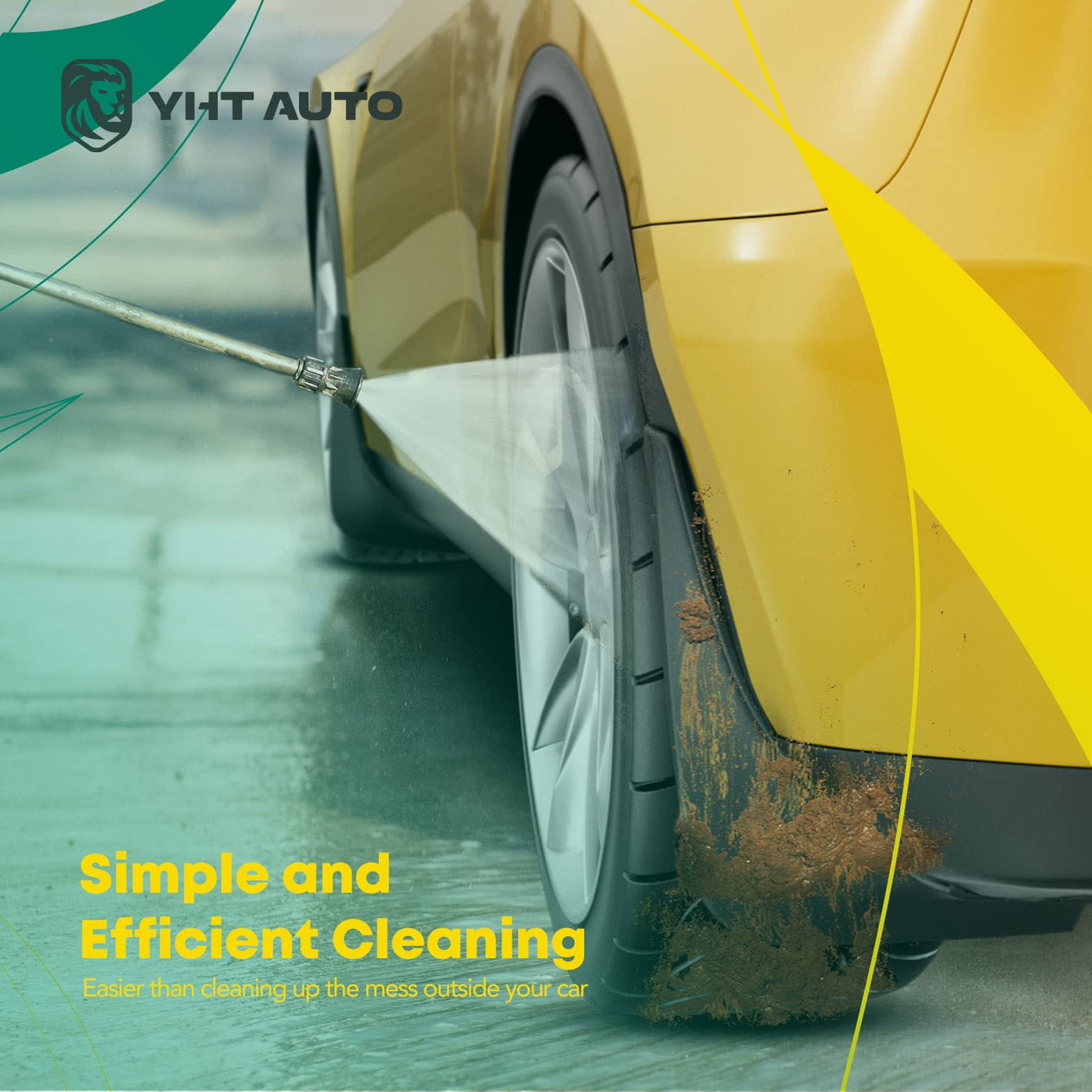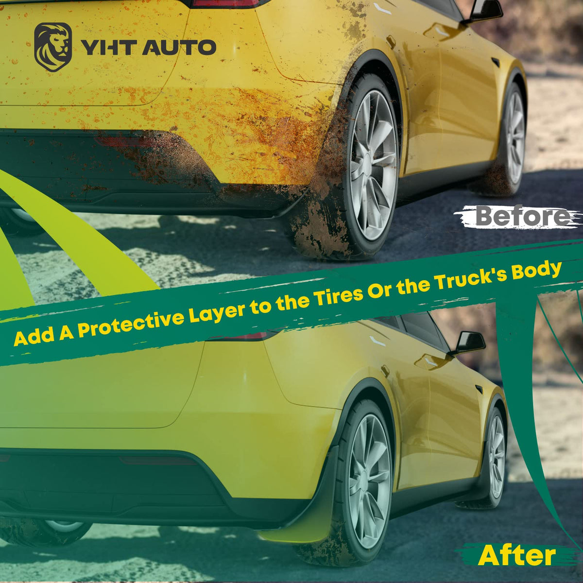 Q: How do these mud flaps help in vehicle protection?A: The YHTAUTO mud flaps protect your vehicle's paint and wheels from dirt, debris, and other elements, ultimately reducing the frequency of costly repairs and maintaining your vehicle's appearance.