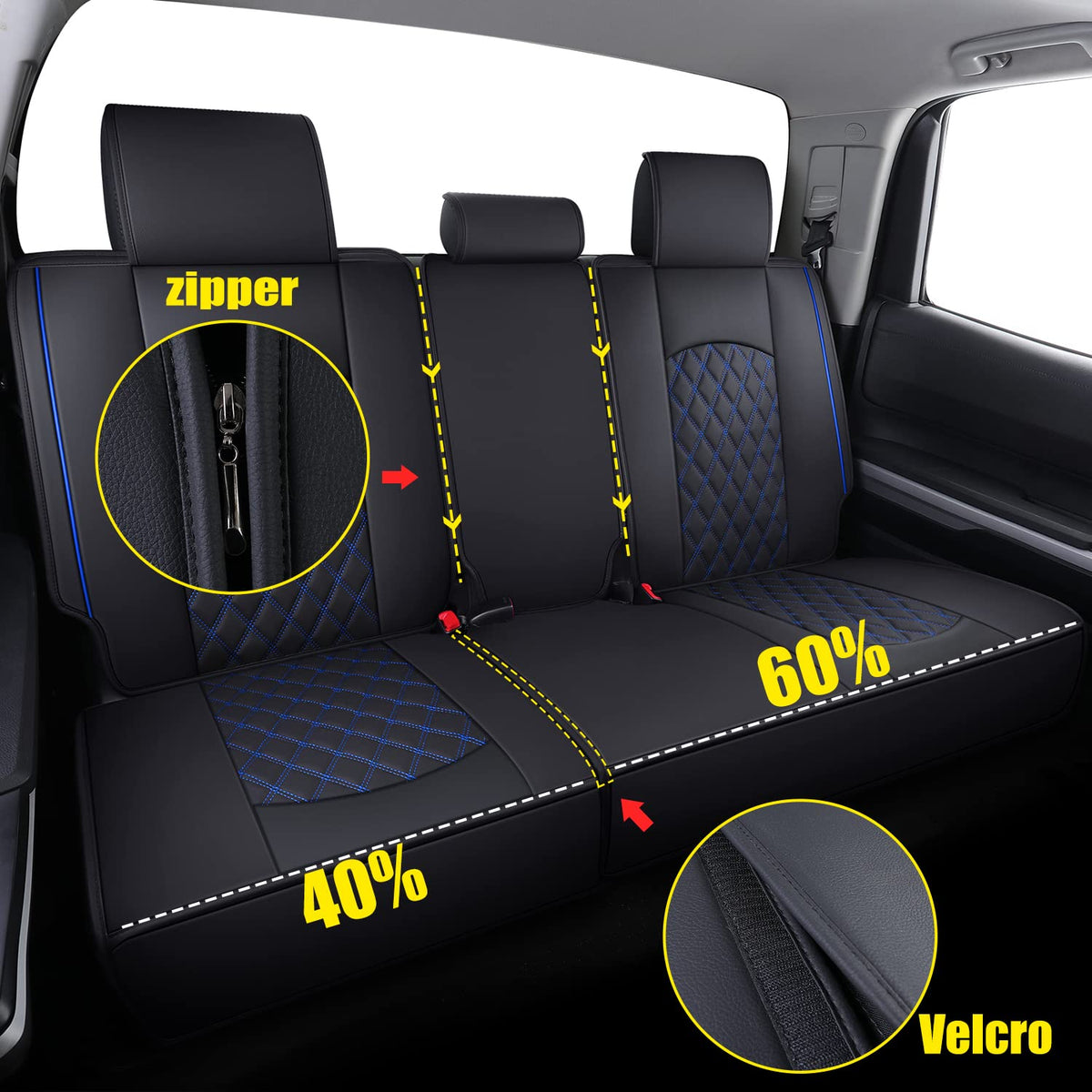 CUSTOMIZED CAR SEAT COVERS: Custom fit for 2008 2009 2010 2011 2012 2013 2014 2015 2016 2017 2018 2019 2020 2021 2022 2023 2024 2025 Tundra TRD Sport TRD Pro Limited Platinum SX Package Trail Edition Tundrasine Concept 1794 Edition Crew Double Extended Cab Regular Cab MATERIAL: The surface layer is soft and wear-resistant faux leather; The middle layer is a sponge; The bottom layer is an anti-skid bottom cloth to avoid sliding of seat covers COMPATIBLE AIRBAGS: On the side of the seat covers, we have reserved enough space for the airbag to ensure the safety of use CONVENIENT STORAGE: On the front is a small pocket for convenient keys or mobile phones, and on the back are two pockets for storing books and so on EASY TO CLEAN: If the tundra seat cover gets dirty, you can easily wipe with a wet towel