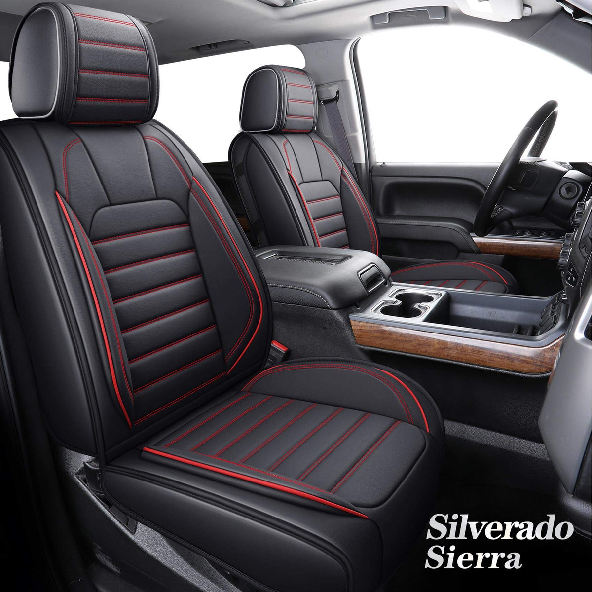 MATERIAL: Made of artificial leather.soft, waterproof and dirt-resistant, and easy to clean | CUSTOM FIT: These seat covers are only fit for the 2007-2023 2024 2025 Silverado Sierra 1500HD 2500HD 3500HD Trail Boss Z71 Crew Double Extended Cab Pickup truck | COMPATIBLE AIRBAGS: The seat belt buckles can be completely exposed since we keep the precise position for the buckles, two pockets are convenient for storing small stuff | PROTECTION: It can protects your car seats from damage by pets or sharp objects, keeping them free from dust, stains, and daily wear and tear | EASY TO INSTALL: Super easy to install the seat covers. After you receive the seat covers, there is an installation manual inside the package, please read that manual before you start to install the seat covers