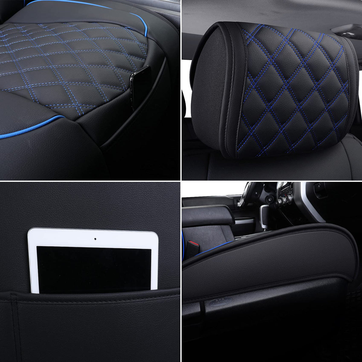Yiertai Truck Seat Covers Compatible With Toyota Tundra For 2008-2025 Tundra Crewmax Sr5 Limited Double Cab Crew Extended Cab Waterproof Leather Seats Protectors(2 Pcs Front Only/Black-Blue)