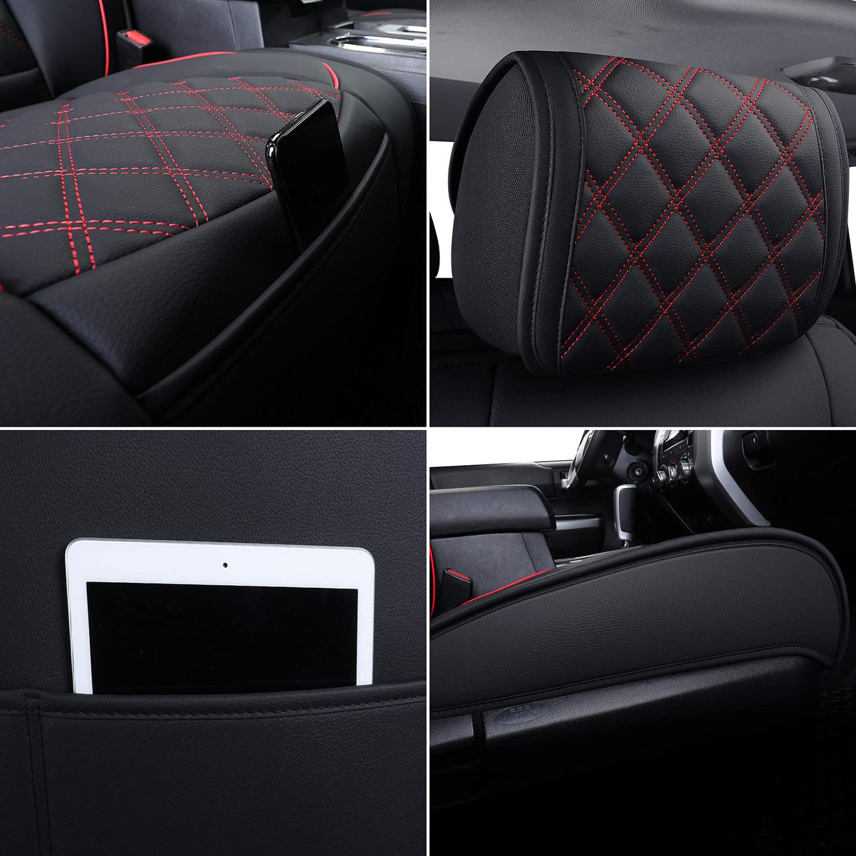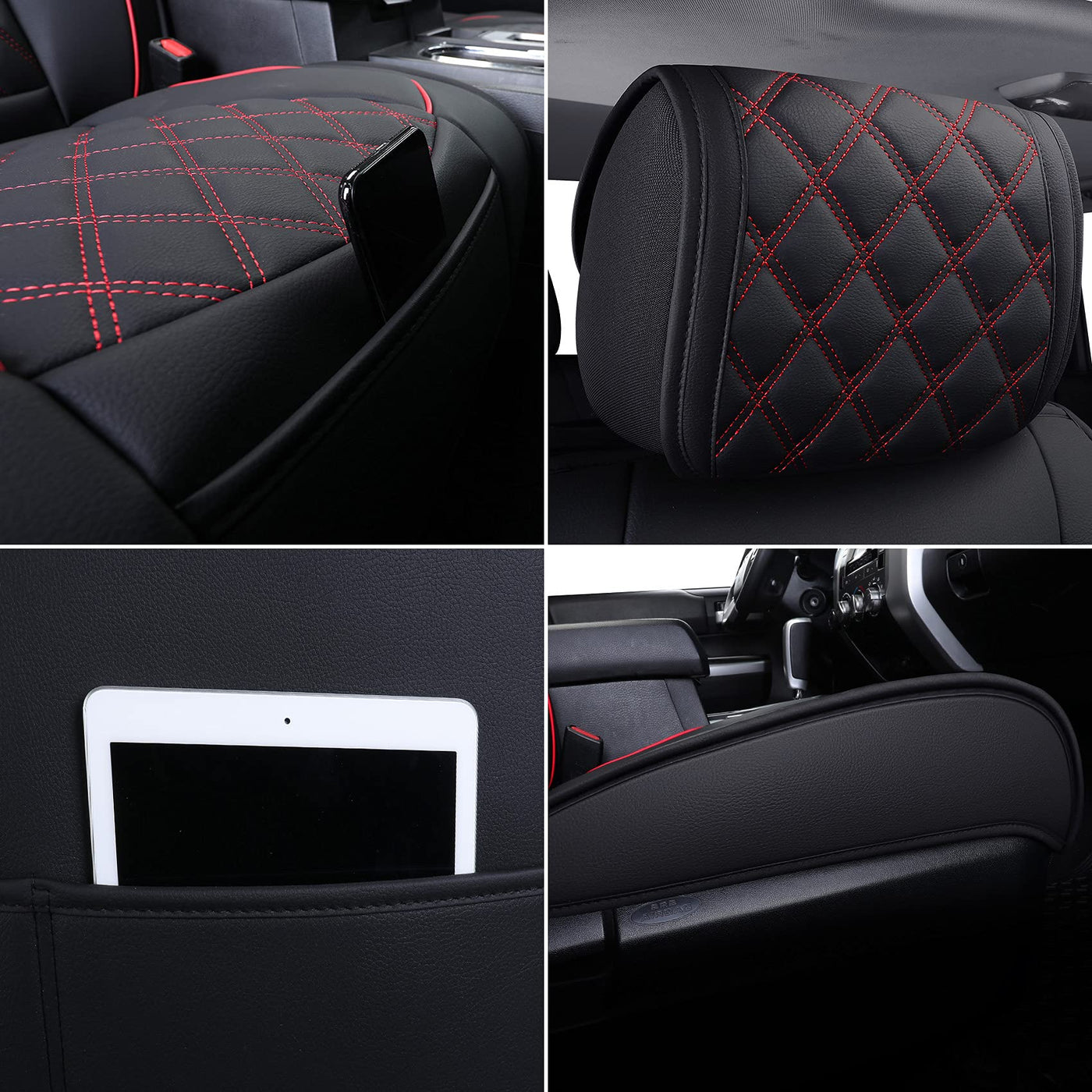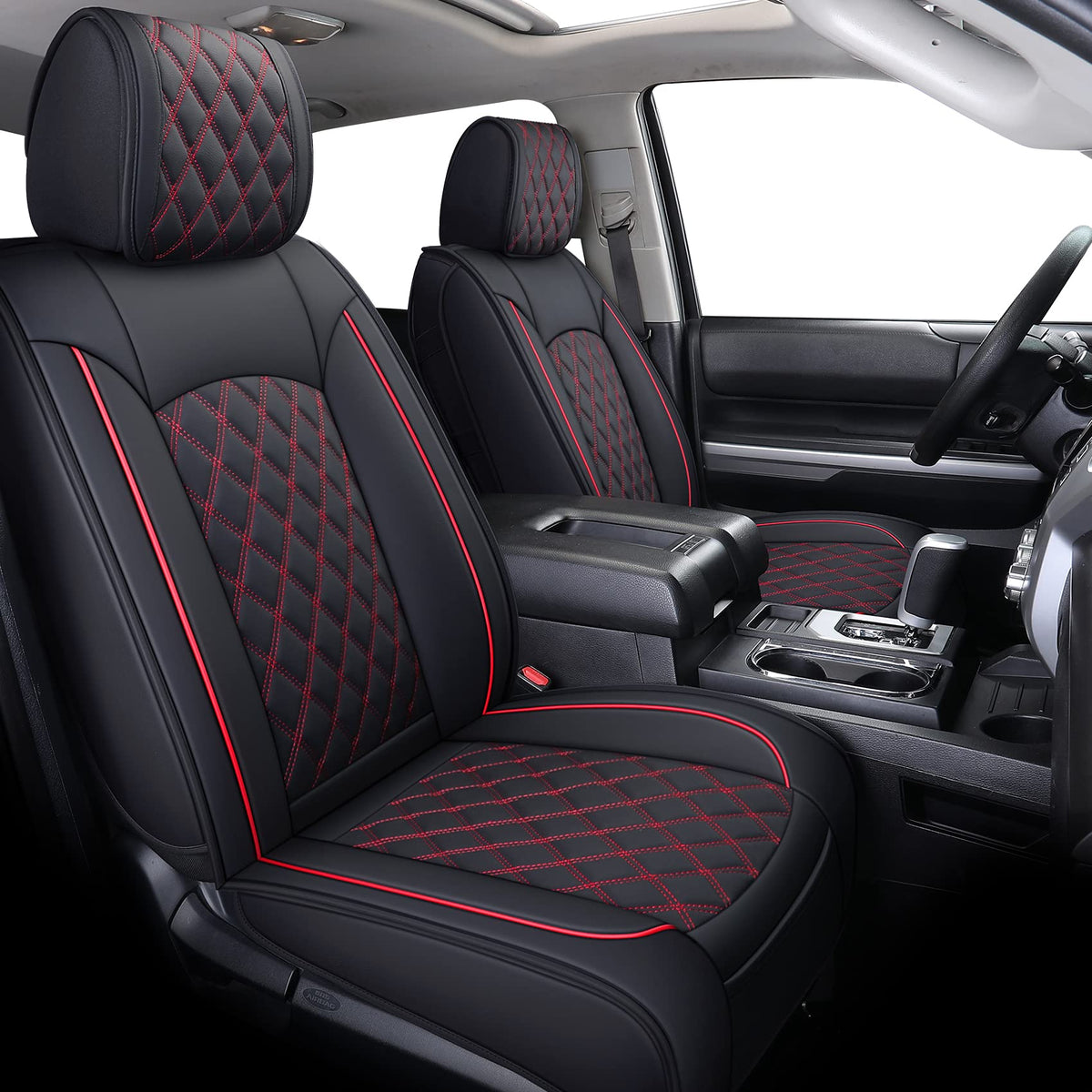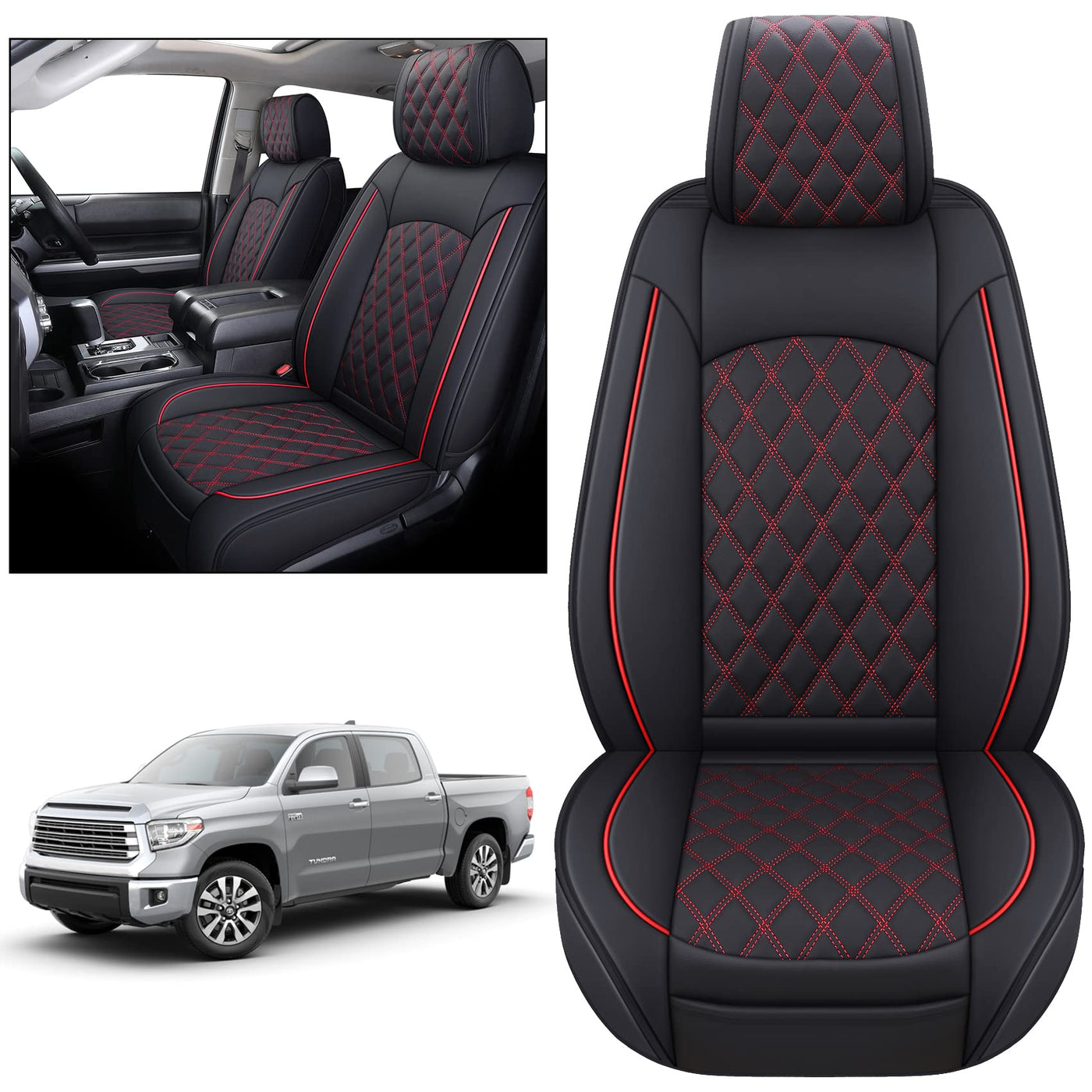 Yiertai Truck Seat Covers For Toyota Tundra 2008-2023 2024 2025 Crewmax Double Cab Limited Platinum 1794 Edition Tundrasine Concept Waterproof Leather(2 Pcs Front Only/Black-Red)