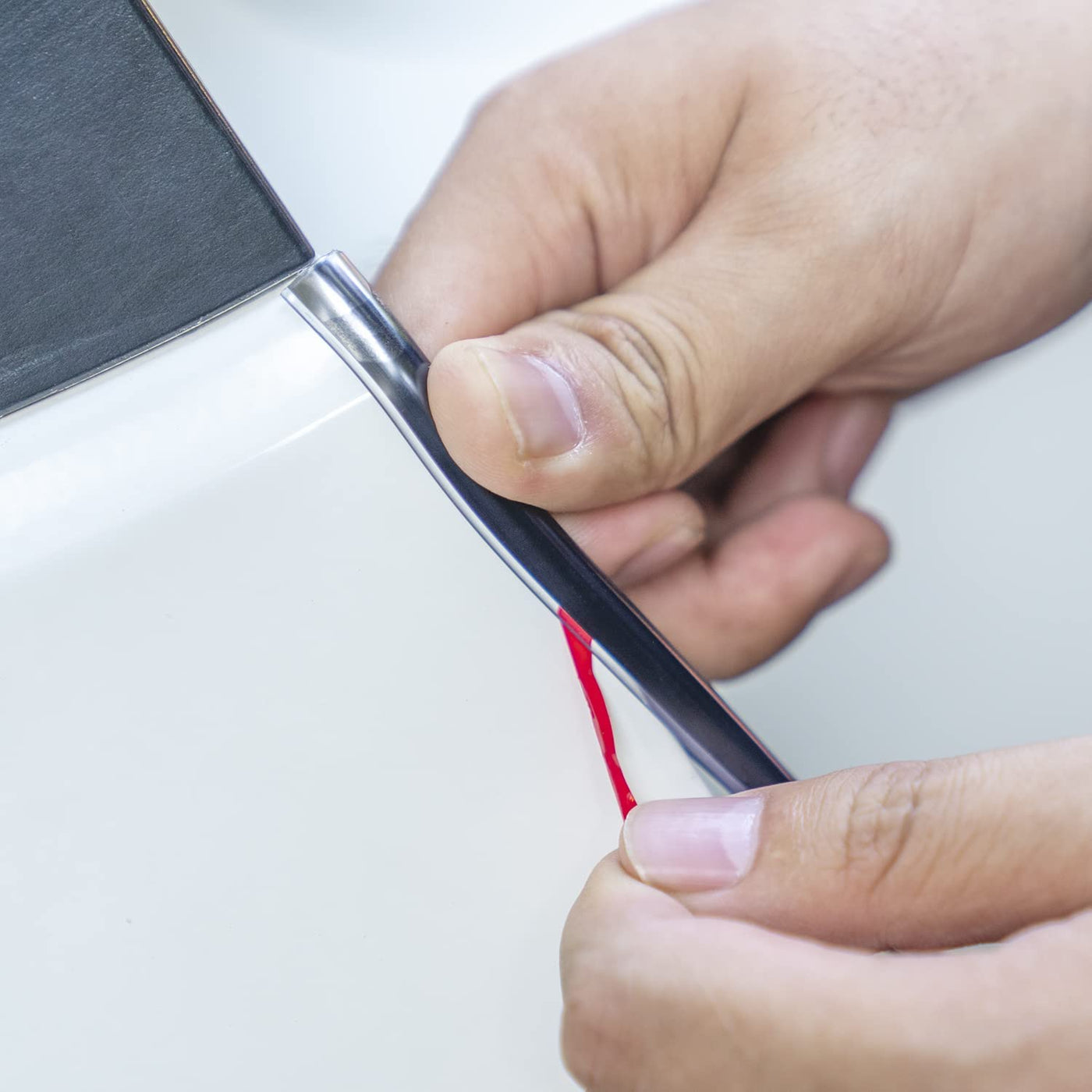 Features:3 layer Chrome and plastic design for protecting the edge of your vehicle from scratching and shocking and adding a bit of style to its look, Great for interior and exterior decorating Color: Silver Material: epoxy resin and chrome Dimensions:7mmX5mmX10m ( 5metres, 10metres, please note the dimensions you want ) Fit:Fits most of Sedans, Trucks, SUV, ATV, UTV, Aluminum Boat door Edge trunk lids, hoods and grilles.NOT for those cars equipped with rubber strips or those car doors are too thick (such as T esla, VW Passat) Installation process: 1. Clean the application area with rubbing alcohol or water. 2. Uncover the tape from the tip of the lining (Ensure the tape is install INSIDE the door) and peel the red strip off the tape by approximately 2 inches. 3.Start from the top, insert the lining onto your door edge until the lining is fully seated. 4.Press the lining with your thumb along the door edge until it is fully seated, then pull the red strip off. 5.The application can be cut and re-installed with scissors in a curved place. 6. Do not wash your car within 1~2 days after you installation Note: If the tempeature is below 25 degree, please use a heat gun or blow dryer to heat it for 20 to 50 seconds, The trim will become softer, and more easier to apply on curve shape.