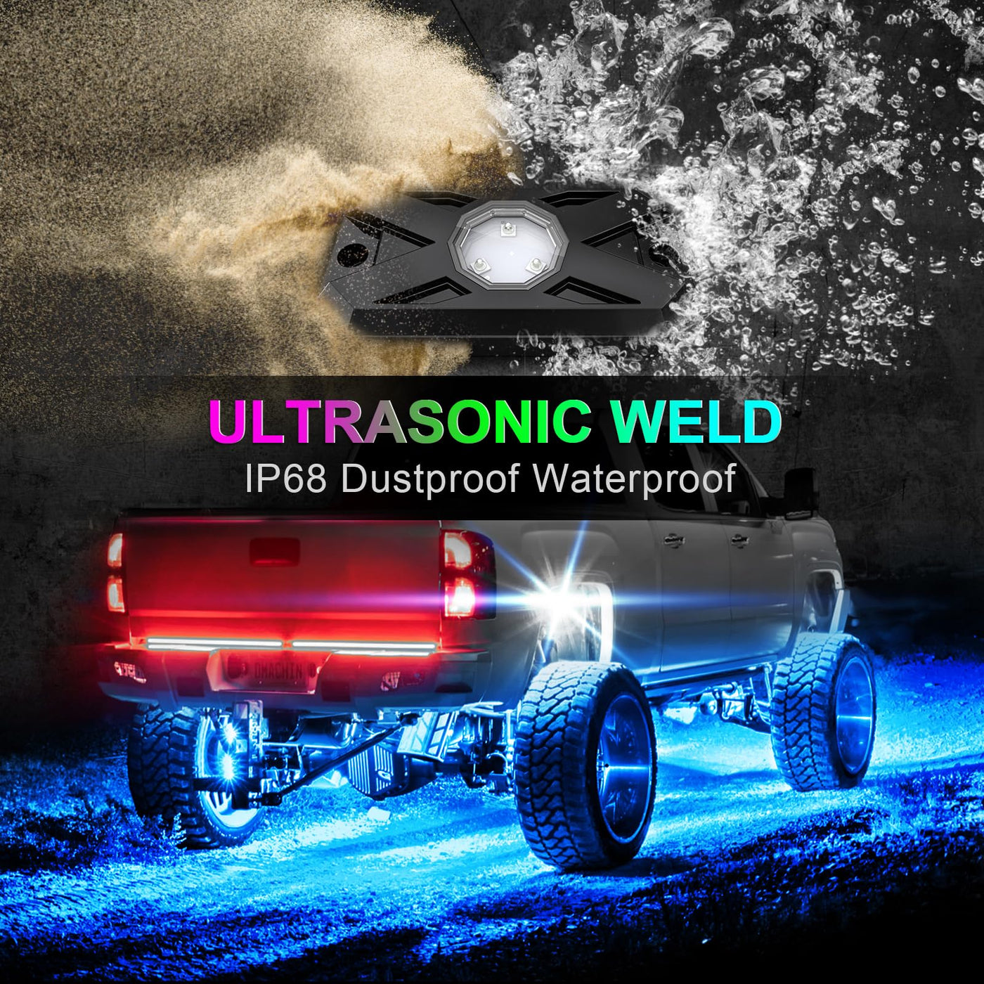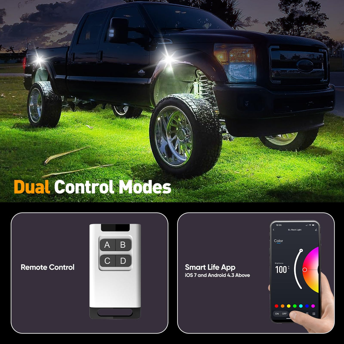 Yilaie Rgb Led Rock Lights Kit 4 Pods, Upgraded Underglow Multicolor Led Light Pod With App/Rf Remote Control, Flashing Music Mo