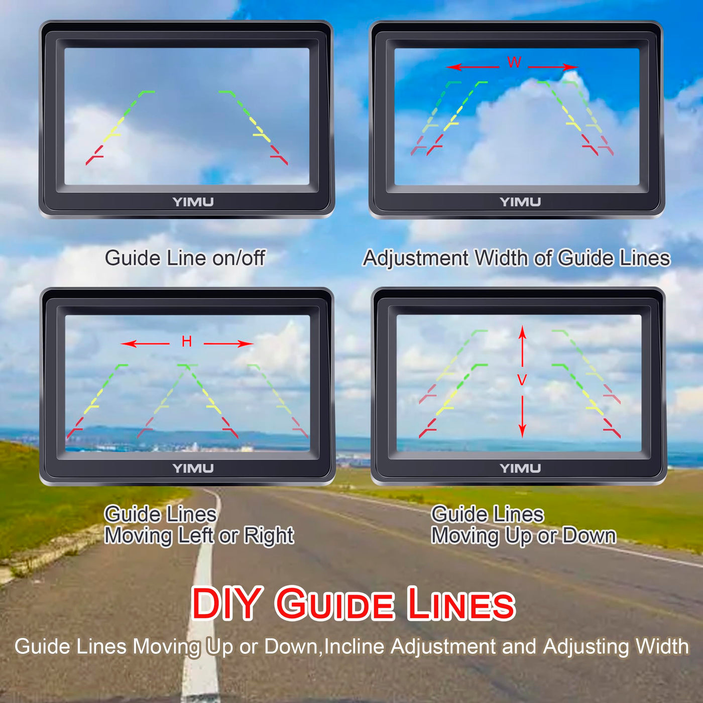 Q: Can the parking grid lines be adjusted or turned off?A: Absolutely! The YIMU Backup Camera allows you to adjust the parking grid lines' width and position them to suit your preferences. If preferred, you can also turn off the guide lines completely.