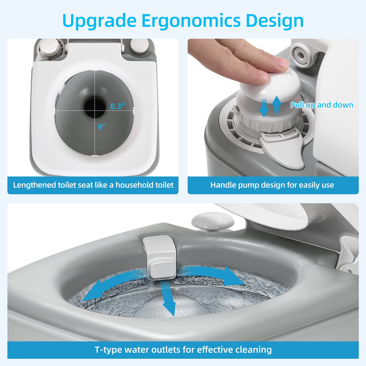 HIGH LOAD CAPACITY: Our portable toilet is made of high density HDPE and PP material in precise molded process with strong structure and great durability; Its maximum load of RV toilet with 441 lbs can meet people
