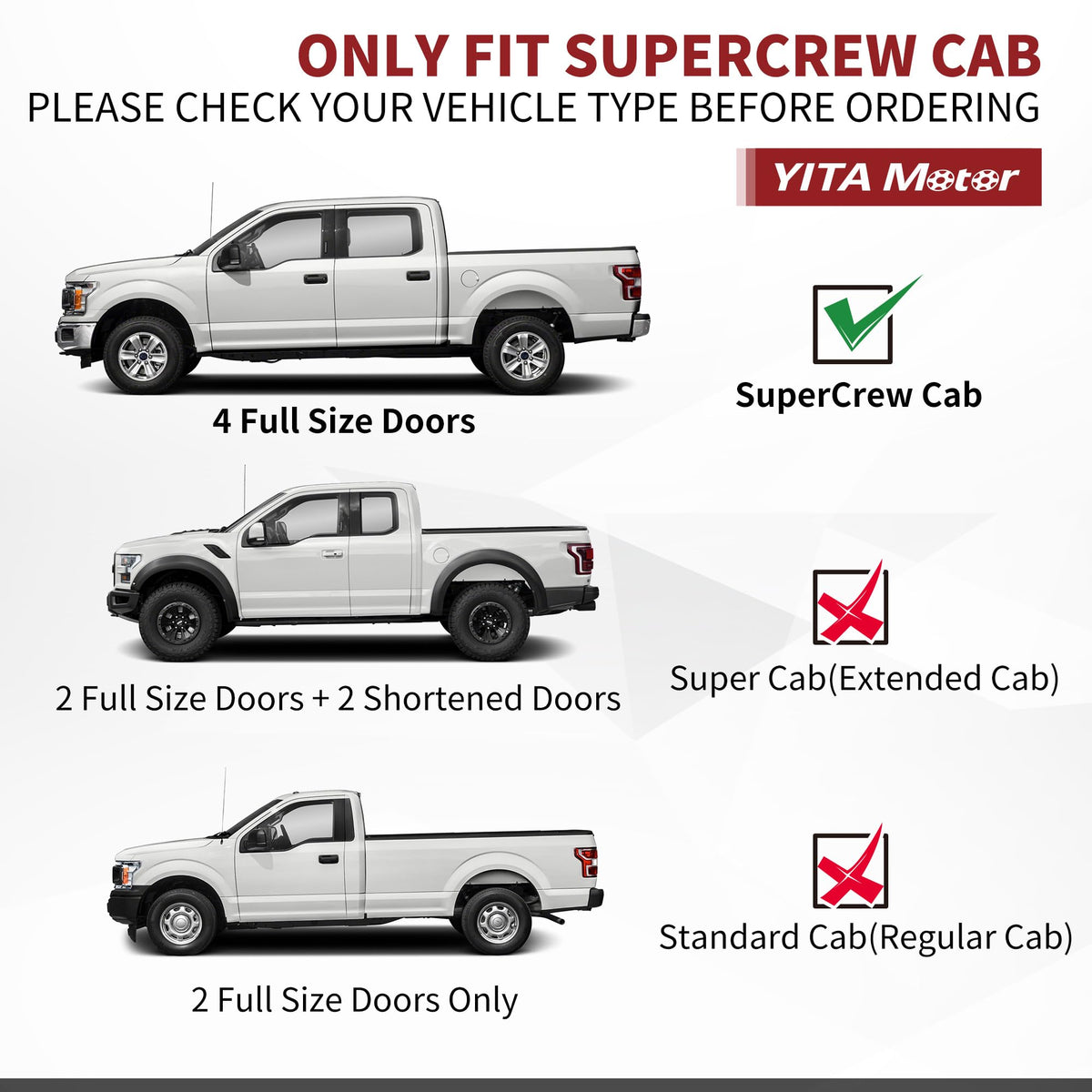 IMPORTANT - This running board side step is compatible with the 2009- 2014 Ford F-150 Super Crew Cab. Please check the Cab size picture if you do not know the model of your vehicle | PRACTICAL DESIGN - 6'' wide stylish black stainless steel pad provides a textured surface for excellent footing. Each side can support up to 450 lb | SUPER QUALITY - The running boards' structure provides strength and durability. The 6-inch non-slip injection step pad allows easy movement such as stepping in, stepping out, and even jumping (450 lb. capacity) | SUPREME FUNCTIONALITY - Made from Stainless Steel and pre-treated with rust-resistant powder coatings. One-piece design ensures excellent performance and looks for years to come | EASY TO INSTALL - Easy bolt-on installation with no drilling required. All factory holes are perfectly aligned with the mounts; bolts to factory mount in less than an hour