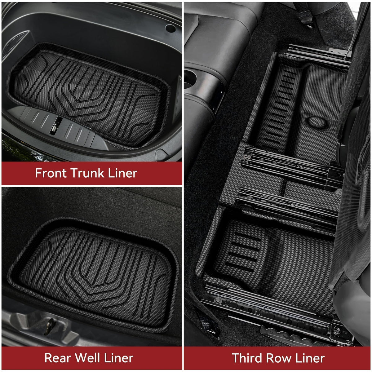Yitamotor 9Pcs Tesla Model Y Floor Mats 7 Seater 2024 2023-2021 Cargo Mats Full Sets All-Weather Floor Mats For Model Y 2024 Acc