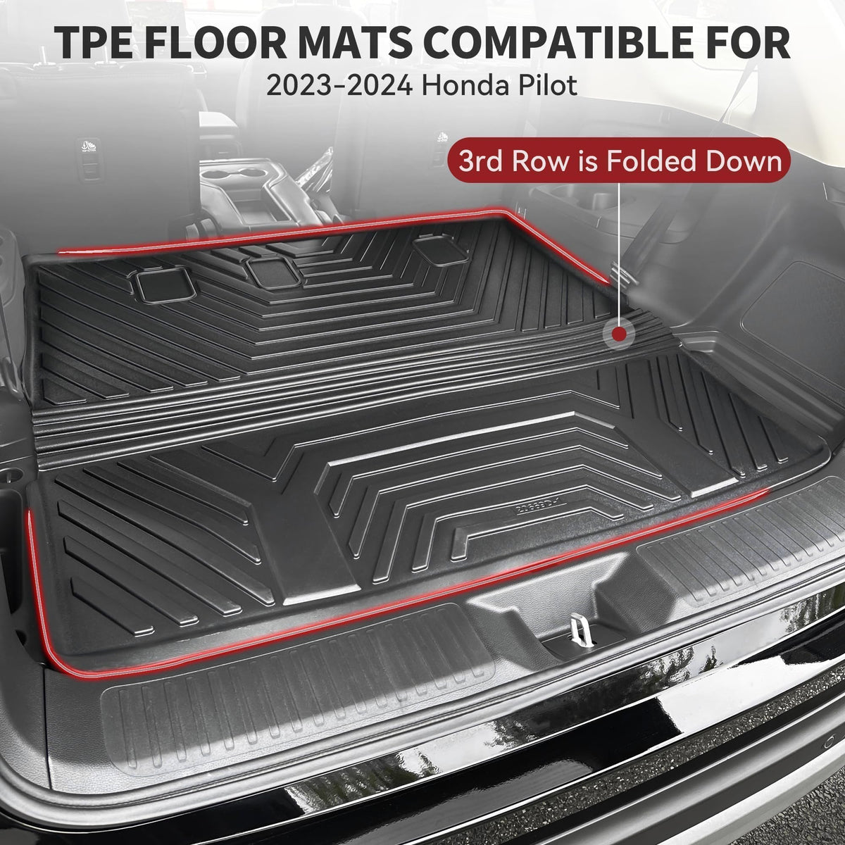 Custom Fit: YITAMOTOR Cargo Mat fit for 2023 2024 2025 Honda Pilot,3D laser scanning technology gives full protection to both the front and back. These mats are not for vehicles with vinyl floors. Please remove old cargo mat before installing new cargo liner | Built For Durability: YITAMOTOR Pilot cargo liner 2025 are made with non-toxic and odorless TPE material, offer comfort and wear resistance; Flexible in extreme temperatures; Does not contain latex, cadmium, lead, or harmful PVC | All Season Protection & Non-Slip: Pilot all-weather cargo mat with unique channels and raised edges trap liquids, debris, and dirt, keeping car and shoes clean; Built-in clips ensure a firm grip and prevent slipping when wet | Easy To Clean: The 2025 Honda Pilot floor mats simply shake the dirt out of the textured skid-resistant surface or spray down with a hose; Cleaning up daily wear and tear off our Pilot car mats is a breeze | Why Choose YITAMOTOR: Our floor mats are processed with advanced technology, rendering tailored protection and all-weather guard to your vehicle