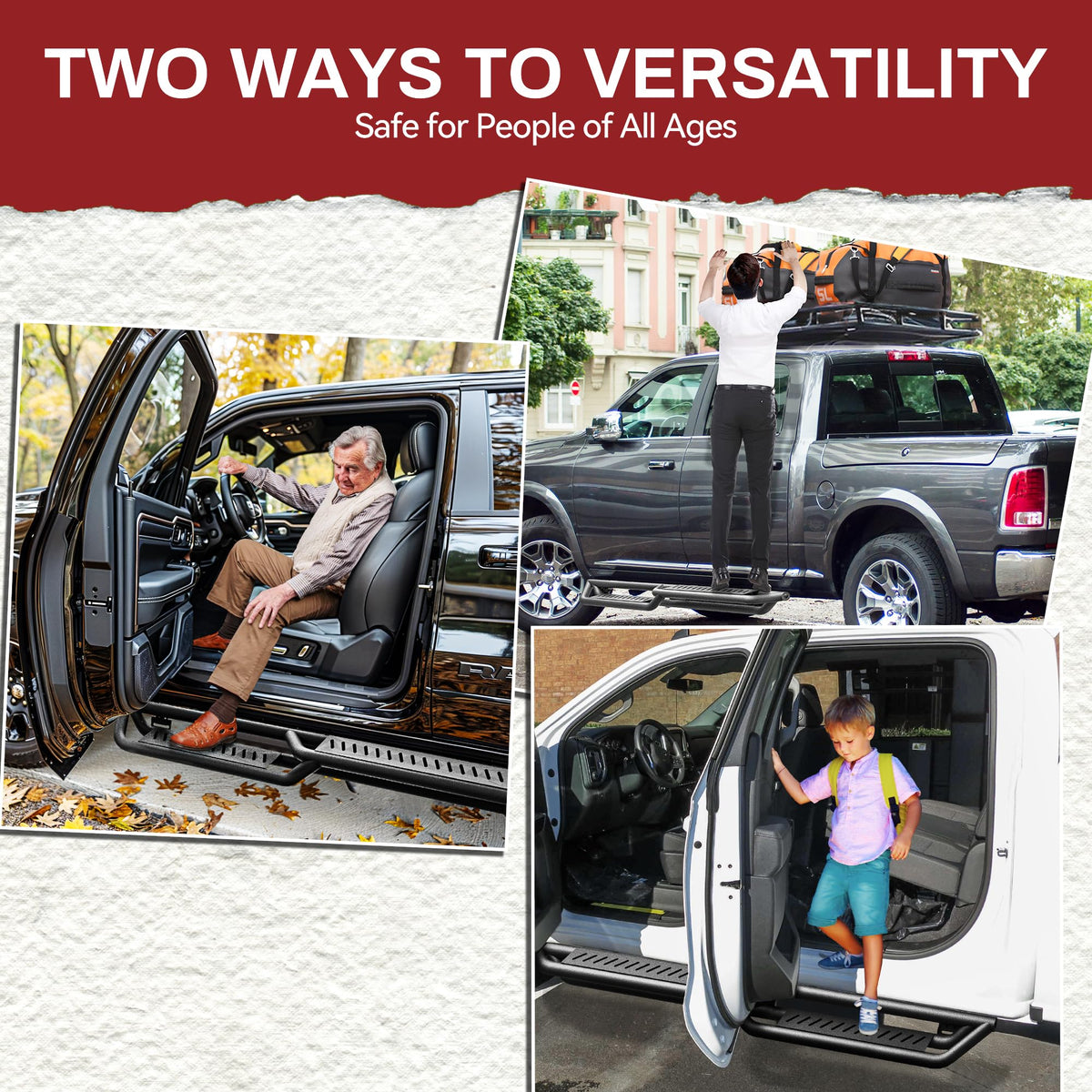 Fitment: YITAMOTOR side steps are designed for 2019-2025 Chevy Silverado & GMC Sierra 1500 (Excl 2019 Ld/Lt), 2020-2025 2500 HD 3500 HD Crew Cab. Check the cab size picture to confirm your model | Customizable Installation: Two configuration options are available. Swap the left and right bars easily to adjust high and low placements. Installation is hassle - free with no drilling needed | High-Low Step Design: The 7-inch drop side steps provide easier vehicle access for all ages. Raised steps also simplify rooftop tasks | Heavy-Duty Construction: Running boards for Silverado crew cab, made of sturdy carbon steel with a three - tube design, these step bars can support up to 550 lbs without deformation. They offer reliable strength and durability | All-Weather Durability: Coated with dual - stage textured black powder for rust and corrosion resistance. Laser - cut step plates provide a non - slip surface and stable footing in various weather conditions