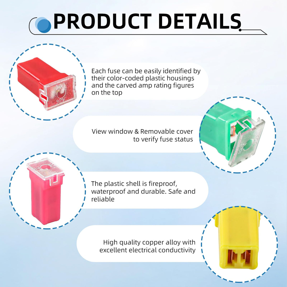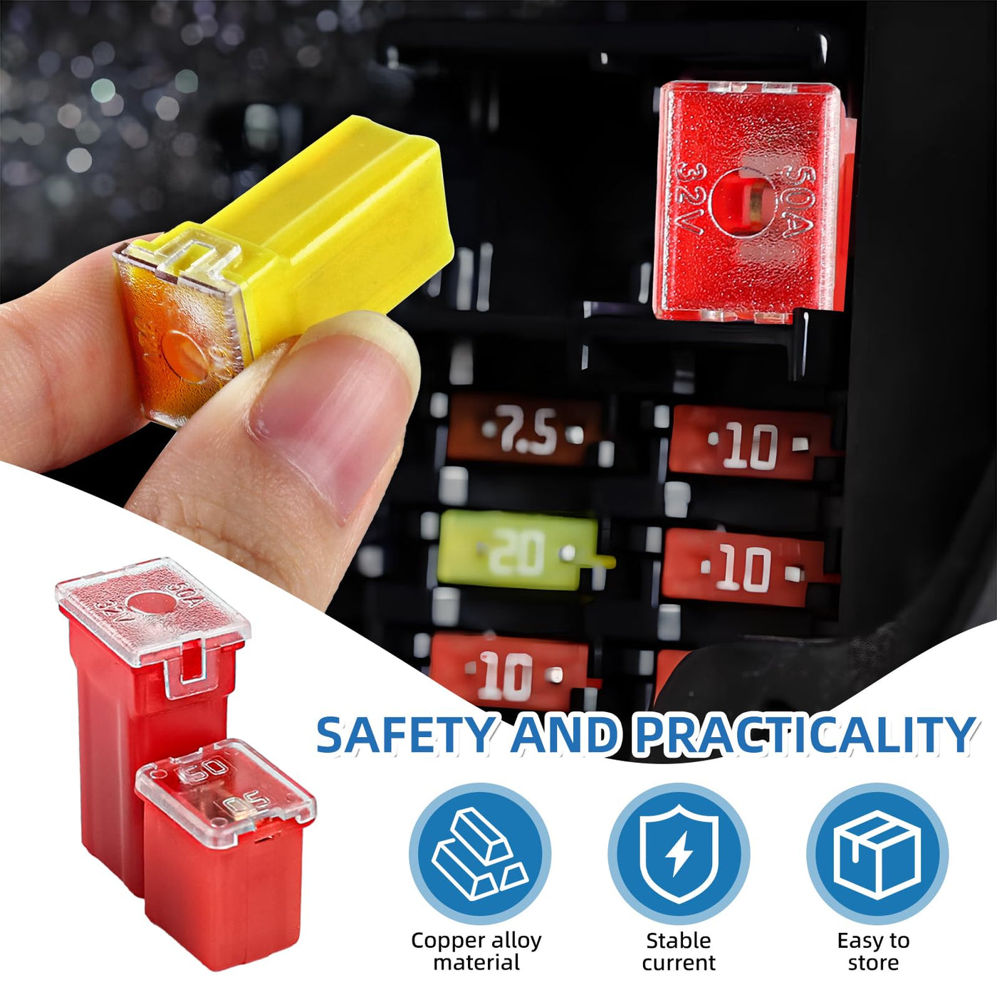 YNZDRWA 20PCS Car Fuses Assortment Kit, Tall/Standard and Low Profile Box Shaped Fuses for Pickup Trucks, Cars, RVs, and SUVs. Professional Car Cartridge Fuses Automotive Kit (20A/30A/40A/50A/60A)