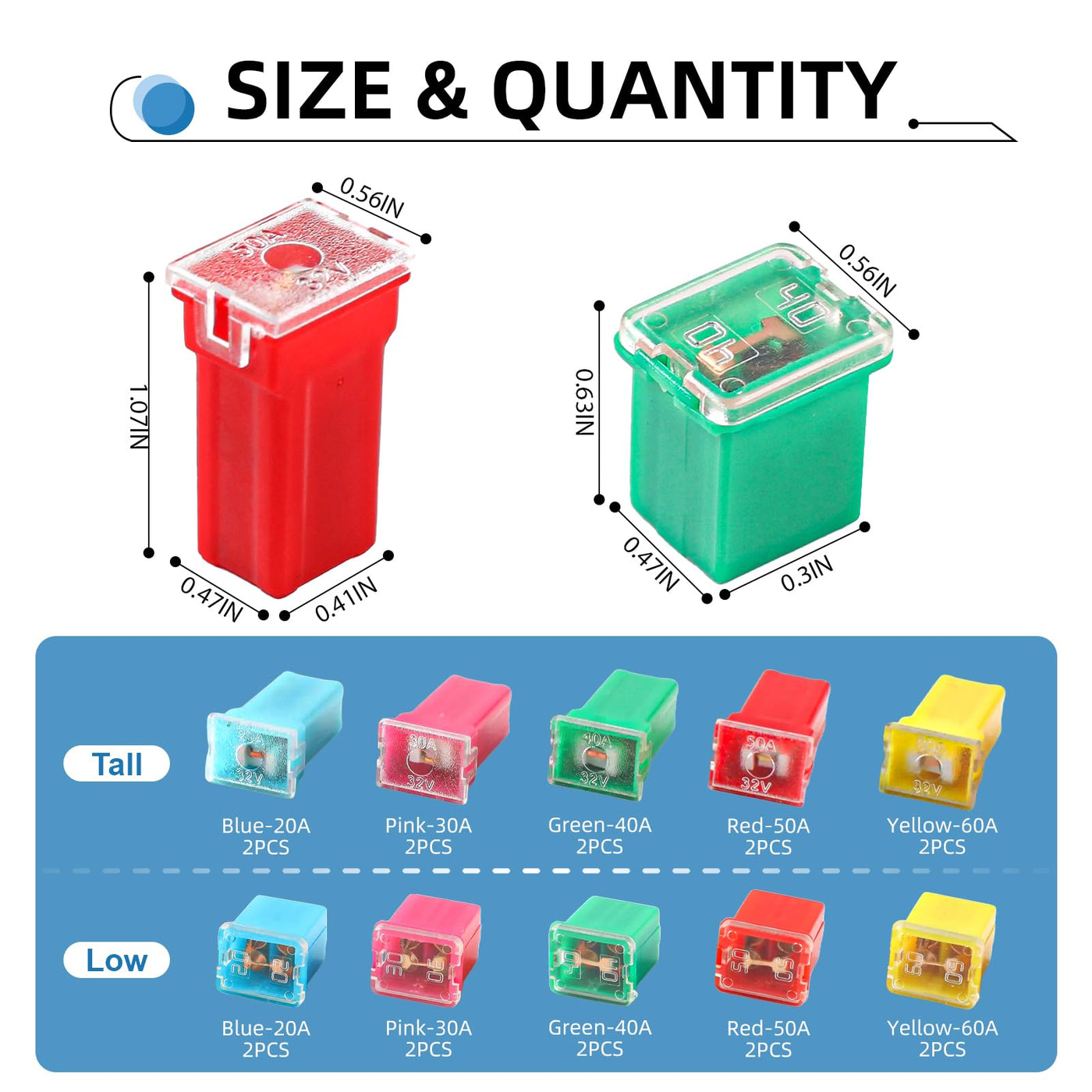 YNZDRWA 20PCS Car Fuses Assortment Kit, Tall/Standard and Low Profile Box Shaped Fuses for Pickup Trucks, Cars, RVs, and SUVs. P