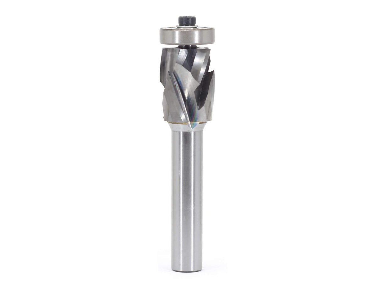 Highlights: - Flush trim endgrain of any direction for a perfect finish - High performance C3 micro-grain solid carbide sleeve, polished to a mirror finish - For use on table mount and handheld router - Bit is contructed from a solid carbide sleeve welded to a hardened steel core - Complex up-down or compression geometry produces a finish that is unmatched by standard flush trim bits.