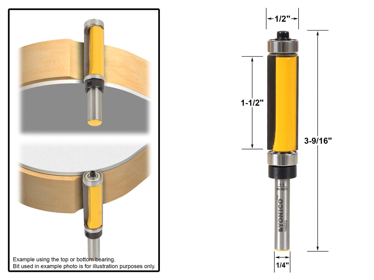 YONICO Router Bits Pattern Bit Flush Trim Top and Bottom Bearing 1-1/2-Inch 1/4-Inch Shank 14982q