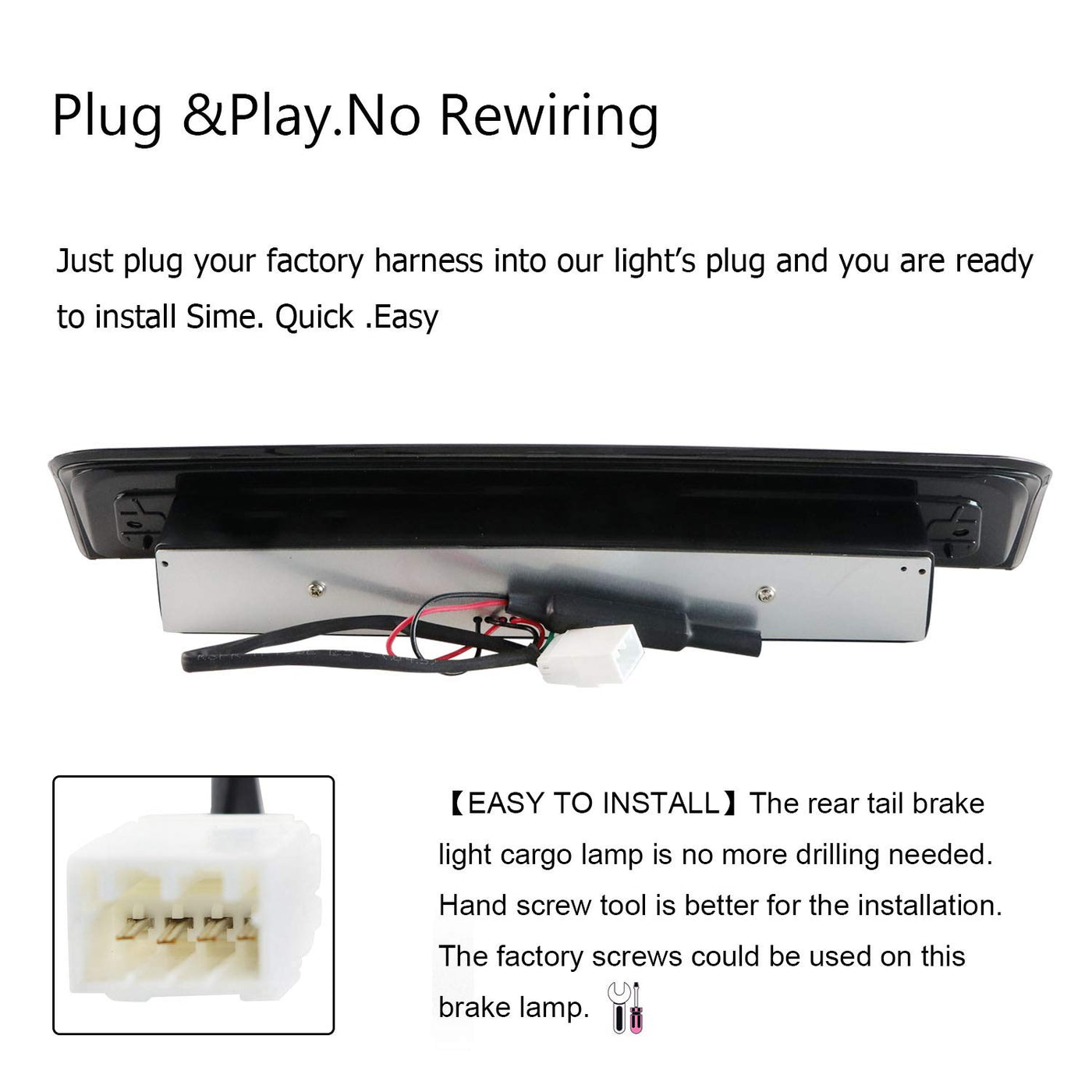 The LED Third Brake Light comes with a brake light seal gasket for better waterproof, No worry about water, snow or another bad weather condition anymore. Specification: -Quantity Sold: Set of 1 -Certification: DOT/SAE approved -Color Finish: Black Housing Smoke Lens -Location: Mounts using factory mounting locations -Product Fit: CAD designed to provide a perfect, factory type fit -Part Numbers: 55372082AD 55372082AC Suitable for Below Models: -LED 3rd Brake Light Fit for Dodge Ram 2009-2017 1500 -LED 3rd Brake Light Fit for Dodge Ram 2010-2017 2500 -LED 3rd Brake Light Fit for Dodge Ram 2010-2017 3500 Feature: -Function: brand new 3rd brake light, a great aftermarket part with premium quality for maximum safety. -Installation: Easy installation, Plug-n-Play Operation, Uses Existing Bolt Holes for Installation, A direct replacement for the old or broken one -Excellent Design: Brand New 3rd brake light and it has high brightness, which provides maximum visibility to alert trailing drivers. -Waterproof: This LED third brake light is IP67 waterproof, prevent from dust, mud, snow or heavy rain. Package Included: -1 x LED Third Brake Light -1 x Foam Gasket