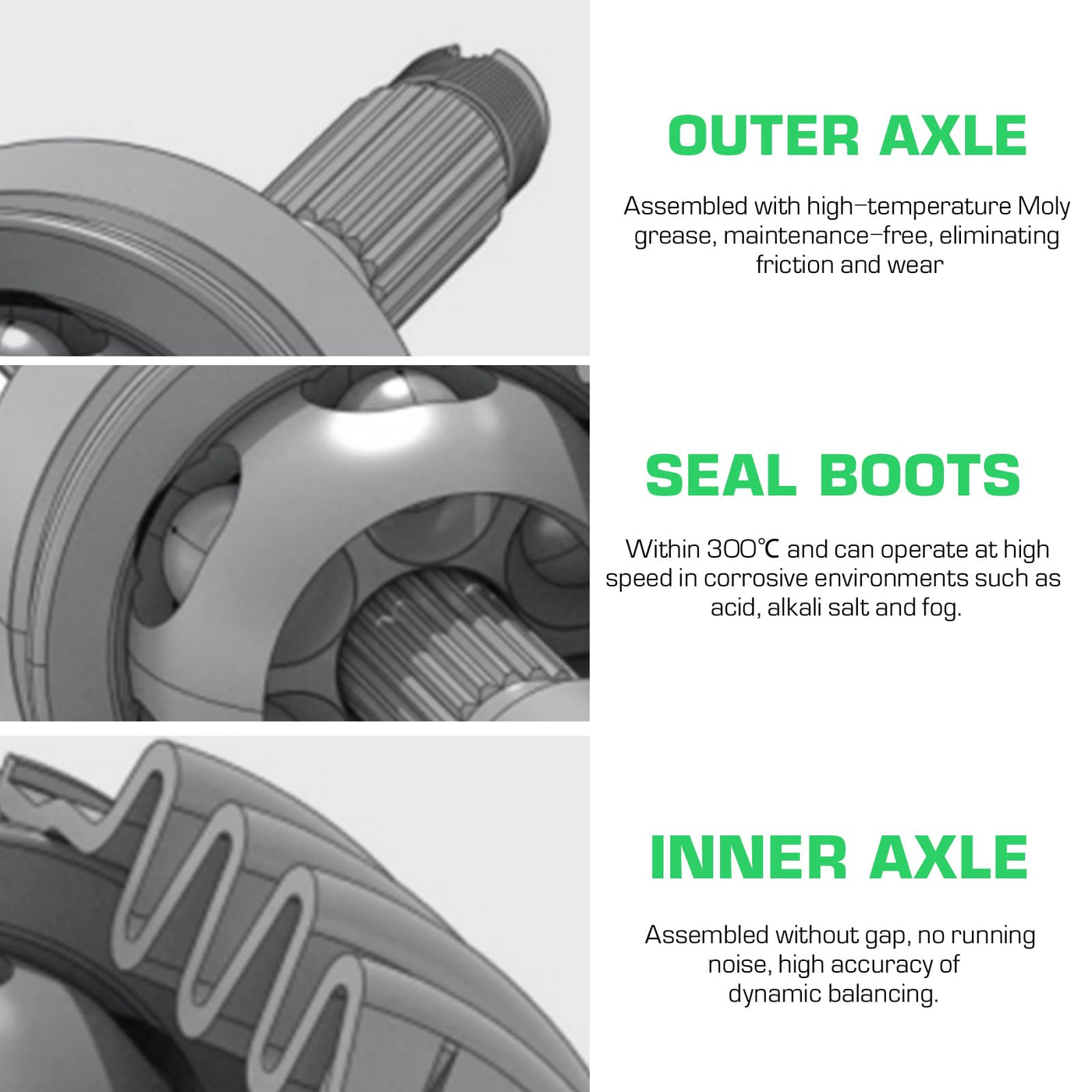 ???FITMENTS OF CV AXLE: Fit For Polaris Ranger 500 - 2017-2022 Fit For Polaris Ranger 570 - 2015-2021 Fit For Polaris Ranger 570 Crew - 2015-2021 Fit For Polaris Ranger 570 Crew EPS - 2015-2020 Fit For Polaris Ranger 570 EPS - 2015-2019 Fit For Polaris Ranger 570 EPS Full-Size - 2015 2016 Fit For Polaris Ranger 570 EPS Hunter Edition - 2016 Fit For Polaris Ranger 570 Full-Size - 2015 2016 Fit For Polaris Ranger ETX - 2015 2016 Fit For Polaris Ranger EV - 2015-2022 Fit For Polaris Ranger EV Li-Ion - 2016-2018 ???Package: 2 Front Left/Right CV AXLE ??Please check the fitment above to see if your vehicle fits! ???WHY CHOOSE Youxmoto ATV CV AXLES ? MATERIAL: Dual Heat Treated Chromoly Steel holds up better through extreme torque. WIDE ARTICULATION ANGLE: Wide articulation angles and an increase in plunge prevents the axle from binding. TPEE BOOTS: Our Thermoplastic Polyester Elastomar CV boots are highly resistant to tearing. HASSLE-FREE PURCHASE: We offer fast response within 8 hours; 1-year warranty. ???FEATURES OF CV AXLE: Made Up of 4340 Chromoly Material. 10% - 15% Increase in CV Joint Size Compared to Regular Joints. Boots Packed with High Load Molybdenum Grease. Position: Front Left/Right Replaces Part number # 1333238