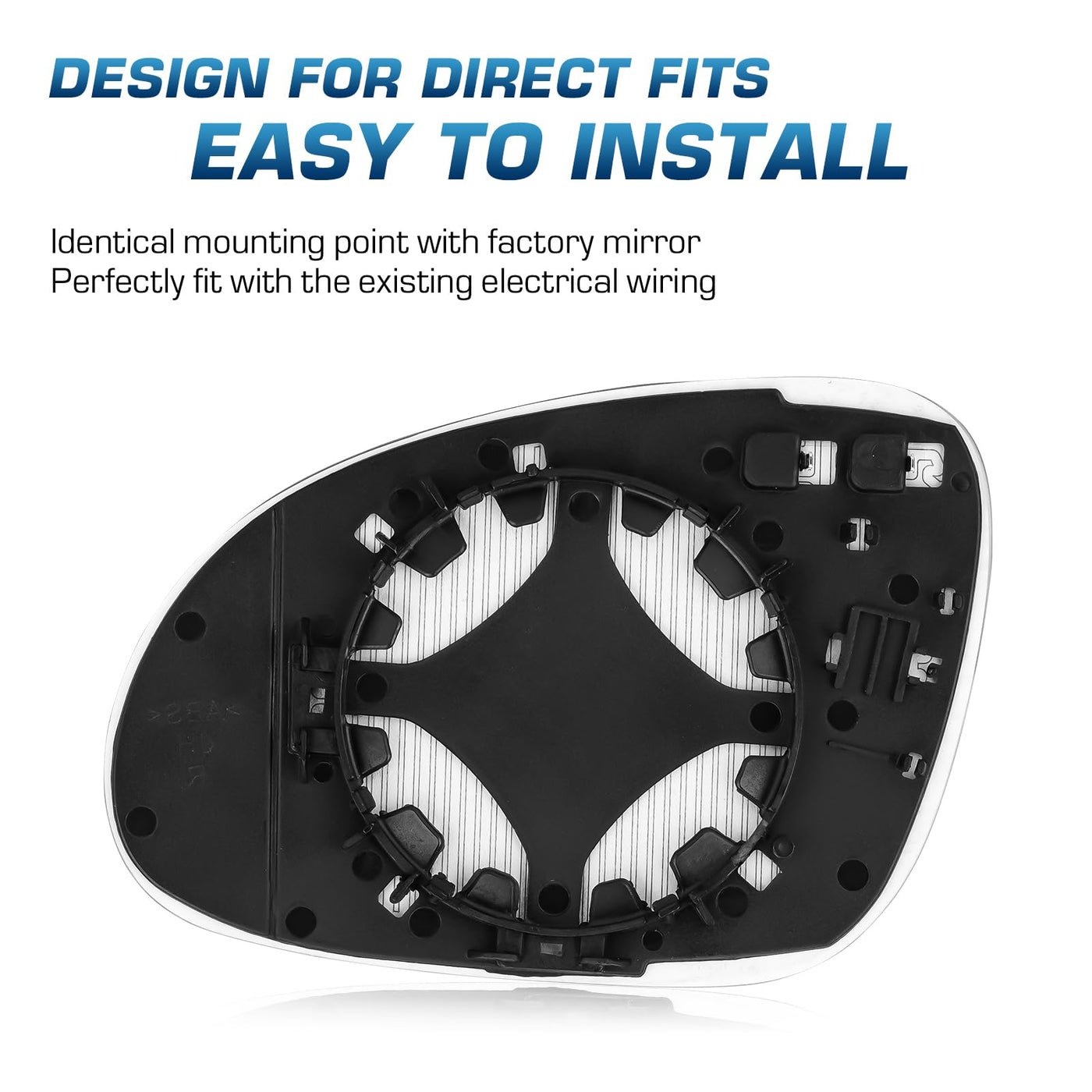 ??Replacement Passenger Side Right Mirror Glass When the car is driving in rain, snow, fog and other weather, the exterior Heated Convex Mirror Glass can be heated by the heating wire embedded in the lens to ensure the clear surface of the lens. DESIGNED AS A DIRECT REPLACEMENT ??Specification: Material: ABS and Glass L*W*Diagonal Size: 7.68 x 5.35 x 1.3 inches Fit part Number: Right Side - Replace 7M3857522E 3B1857522, 1K0857522, 5M0857522F. Package Includes: 1 *Side Power Heated Mirror Glass (Right) ??Fit The Following Vehicle: For Volkswagen 2008 Fit For VW R32 2007 2008 Fit For VW EOS 2006 2007 2008 2009 Fit For VW GTI 2006 2007 2008 2009 Fit For VW Rabbit 2005 2006 2007 2008 2009 2010 Fit For VW Jetta 2011 2012 2013 2014 Fit For VW Jetta (WAGON MODEL ONLY) 2005 2006 2007 2008 2009 2010 Fit For VW Passat ??Note: Please check your car to ensure proper fit when you purchase this mirror glass.