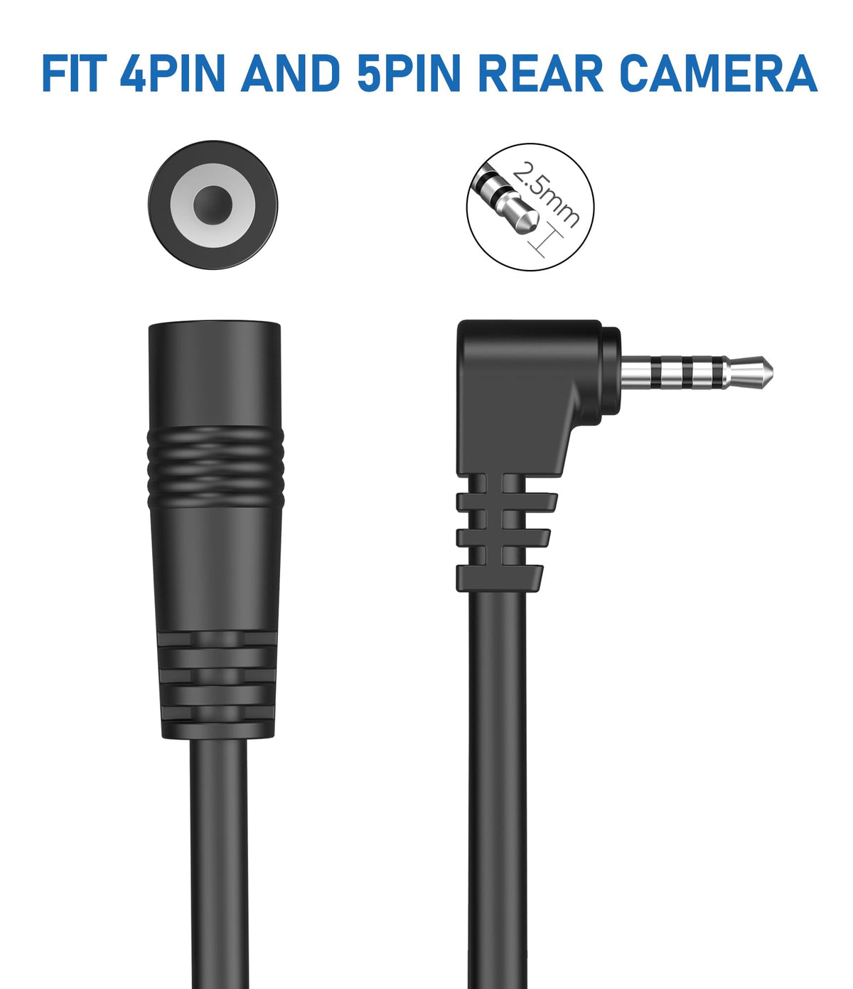 Yqmajim Dash Cam Reverse Camera Extension Cable, (9Ft)90 Degree 2.5Mm 4 Pole Male To Female Mirror Camera Rear View Extension Cord, Backup Camera Extension Adapter Wire, Fit 4Pin And 5Pin Rear Cam> Thicker Pure Copper Core : This Dash Cam Rear View Camera Extension Cable Constructed With Thicker Pure Copper Core, Will Low Signal Loss And Works More Stably. > Compatible Devices :This 2.5Mm Male To Female Dash Cam Backup Camera Extension Adapter Cord Compatible With 4Pin/5Pin Rear Cam. > Multiple Length Options : This Mirror Camera Rearview Cam Cable Can Be Ordered In Different Length:6Ft,9Ft,16.5Ft, Please Search: Yqmajim To Order One Suitable Extra Extension Cable.> Note: This 2.5Mm Dash Cam Reverse Extension Adapter Wire, Fit 4 Pin And 5Pin Rear Cam. For 5Pin Camera, The Mirror Dash Cam Cord Is Too Long Will Cause Voltage Drop. The Longer The Wire, The More Severe The Voltage Drop Is, We Suggest You Choose One Cable With Most Suitable Length. > Customer Service: Each Of Our Car Rear Cam Cables Are Tested To Ensure That They All Work Properly, Please Test Whether It Is Fit For Your Device Before Installation. >> Dash Cam Reverse Camera Extension Cable 2.5Mm Mirror Camera Extension Cord Rear View Cam Extension Cable Dash Cam Reverse Extension Adapter Wire Backup Camera Extension Cable Dash Cam Cable