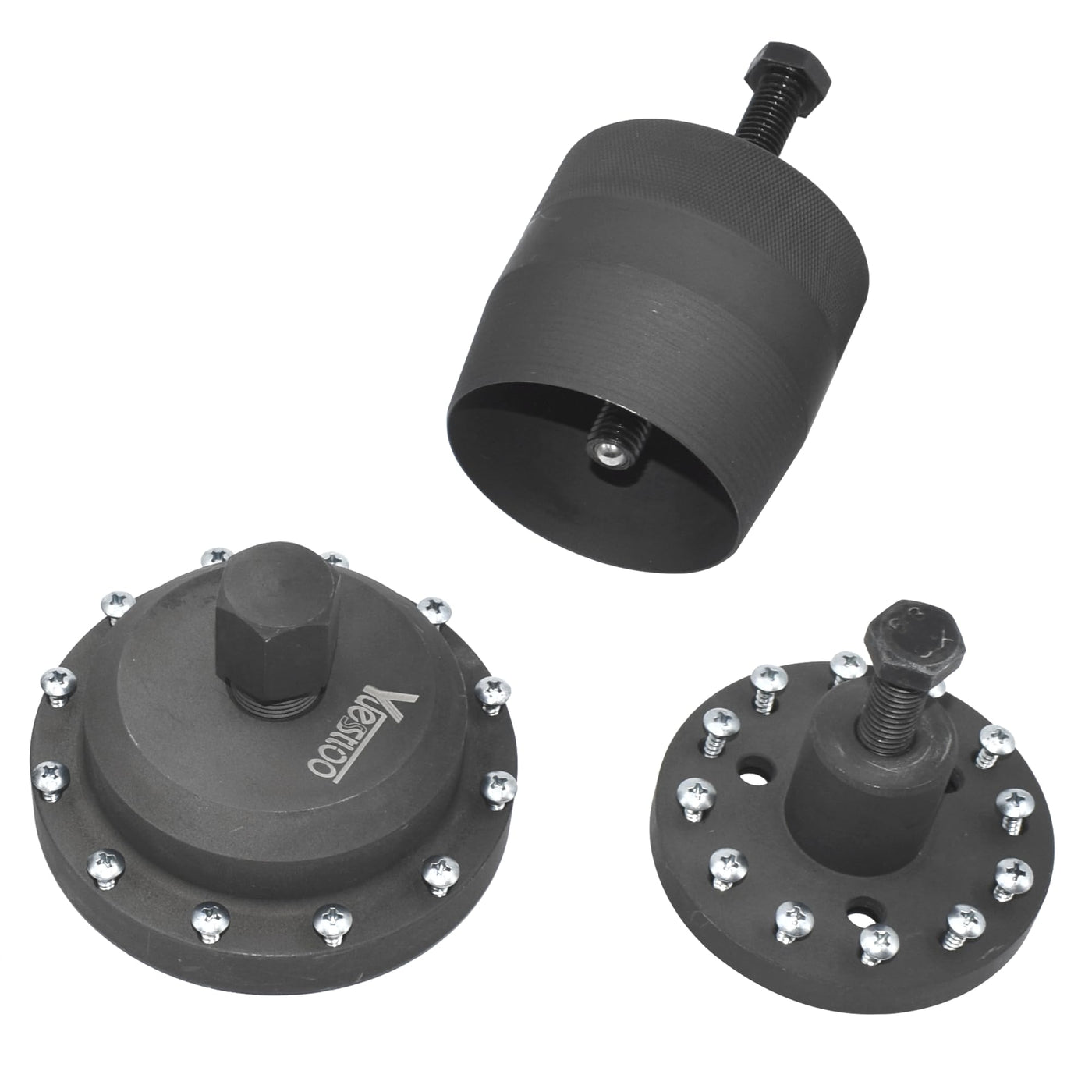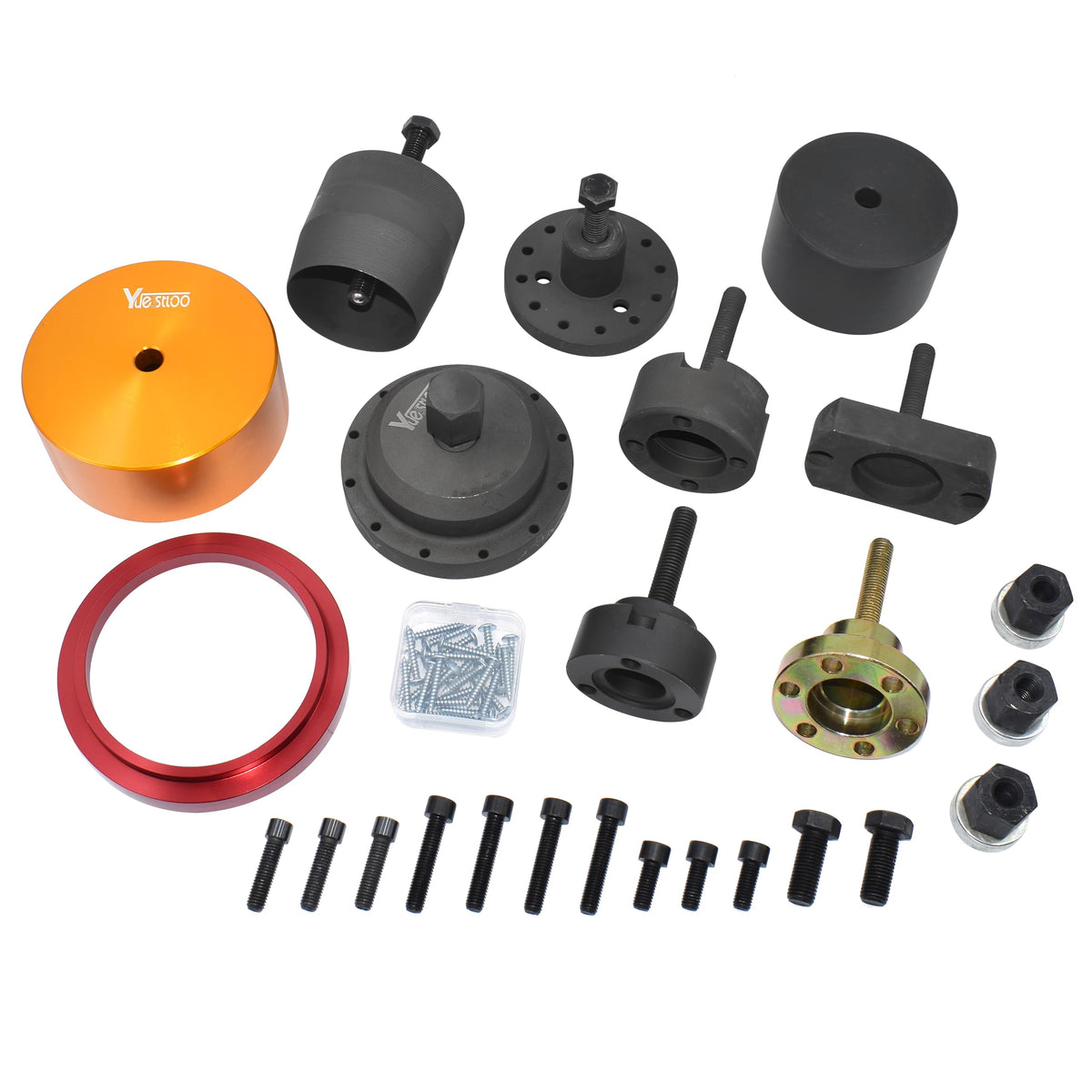 Yuesstloo crankshaft oil seal removal and installer kit are used to remove and install the front and rear oil seal on the crankshaft. Comes with a carrying case and a pair of gloves. Convenient to carry and store. The tools are made of high-quality material, high hardness and strong. Compatible with BMW N20, N26, N40, N42, N45T, N46, N46T, N52, N53, N54, N55 engines. OEM Equivalent Part Number: 119181; 119182; 119183; 119184; 119185; 119220; 119230; 110370 Operation tips: Step 1: Remove six E10 screws which fix the pulley on the crankshaft hub to remove the front pulley. Do not remove the crankshaft front bolt. Step 2: Remove the valve cover and oil pan to clean all belts. Step 3: Use the puller seal and puller screw to remove the oil seal. Screw the seal puller to the seal with your hand while applying pressure inward. Use the wrench to continue rotating the seal puller until it becomes difficult to rotate the wrench. Step 4: Slowly turn the head of the seal puller bolt, and you will see the oil seal gradually appear. Continue to turn the bolt until the oil seal is fully pulled out. If the seal puller is released during this process, please repeat step 3. Step 5: Apply engine oil to the hub and apply primer to the side of the cylinder. Step 6: Install the seal pusher guide to the crankshaft hub. Step 7: Install the seal pusher on the seal pusher guide with the open end of the seal pusher facing the engine. Align the groove of the seal with the connecting line in the engine block, so as not to damage the threads. Turn the nut to push the seal in. Step 8: Make sure that the gasket is fully inserted, and use the sealant to fill the groove of the seal that is aligned with the connecting line of the engine body, then the installation is completed.