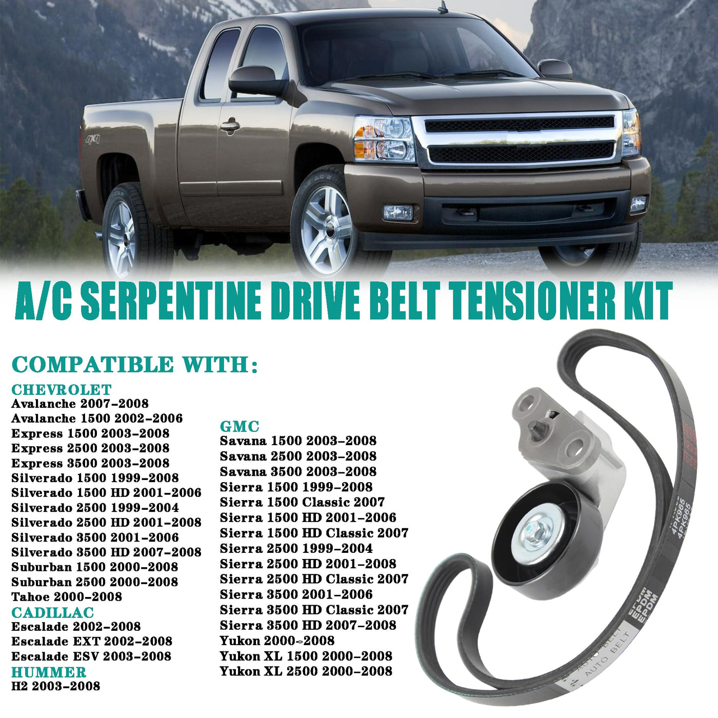 Yzusgomumu Car A/C Serpentine Drive Belt Tensioner Kit 90K-38159 Compatible With 1999-2008 Cadillac Escalade Chevrolet Avalanche