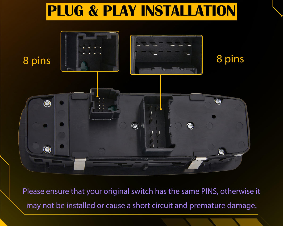 Q: How do I install the power window switch?A: Installation is straightforward with a plug-and-play design. Simply remove your existing driver side window switch and replace it with this new switch.