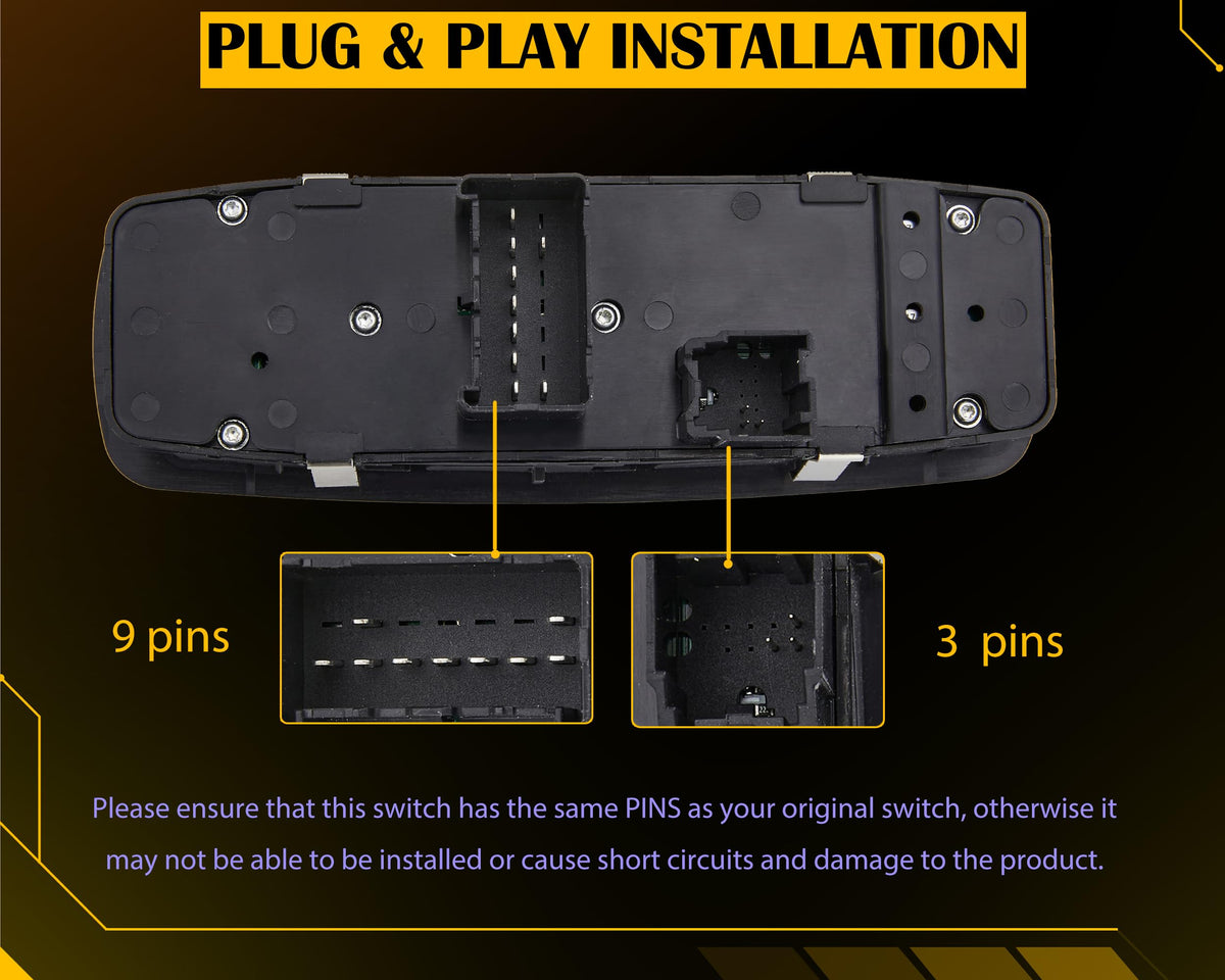 Before The Order Notice: Make Sure Your Car Is On The List Of Suitable Car Models. Backlighting Is A Green Color. With Rearview Mirror Folding Function Button. Please Check Whether The Plug In Your Window Switch Interface Is Aging. Confirm That Your Original Switch Is Exactly The Same As This Product. The Front Of Your Original Switch Is The Same As This Product, And It Is Also 2 Auto. The Back Of Your Original Switch Is Exactly The Same As This Product: 3 Pins Plus 9 Pins.