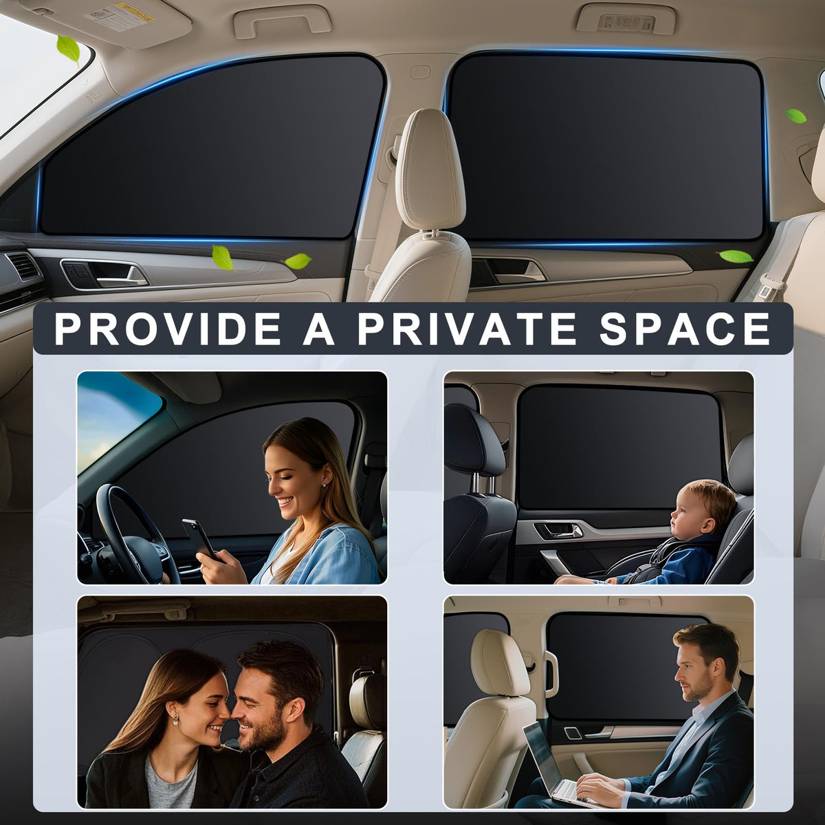 Experience the perfect blend of comfort, privacy, and protection with ZATOOTO car window sun blocker, designed to elevate every journey. Whether youre battling the scorching sun, embarking on a long road trip, or seeking a private space for breastfeeding, napping, or camping, our window shades for car are your go-to solution. Crafted with high-density materials, they block up to 99% of harmful UV rays, safeguarding your skin and preserving your cars interior from sun damage. The magnetic design ensures effortless installation on steel side window frames, allowing for quick setup and a secure fit while maintaining airflow for a cool and comfortable environment. Perfectly compatible with most of car models, including sedans, SUVs, and vans, our shades come with 12 powerful magnets (14 for the rear window) for a tool-free and hassle-free experience. Whether youre on a family road trip, enjoying the outdoors, or simply need a moment of privacy, ZATOOTO car window shades for baby deliver unmatched versatility and reliability, making them an essential addition to your driving life. Choose ZATOOTO and transform every journey into a safer, more comfortable, and private experience!