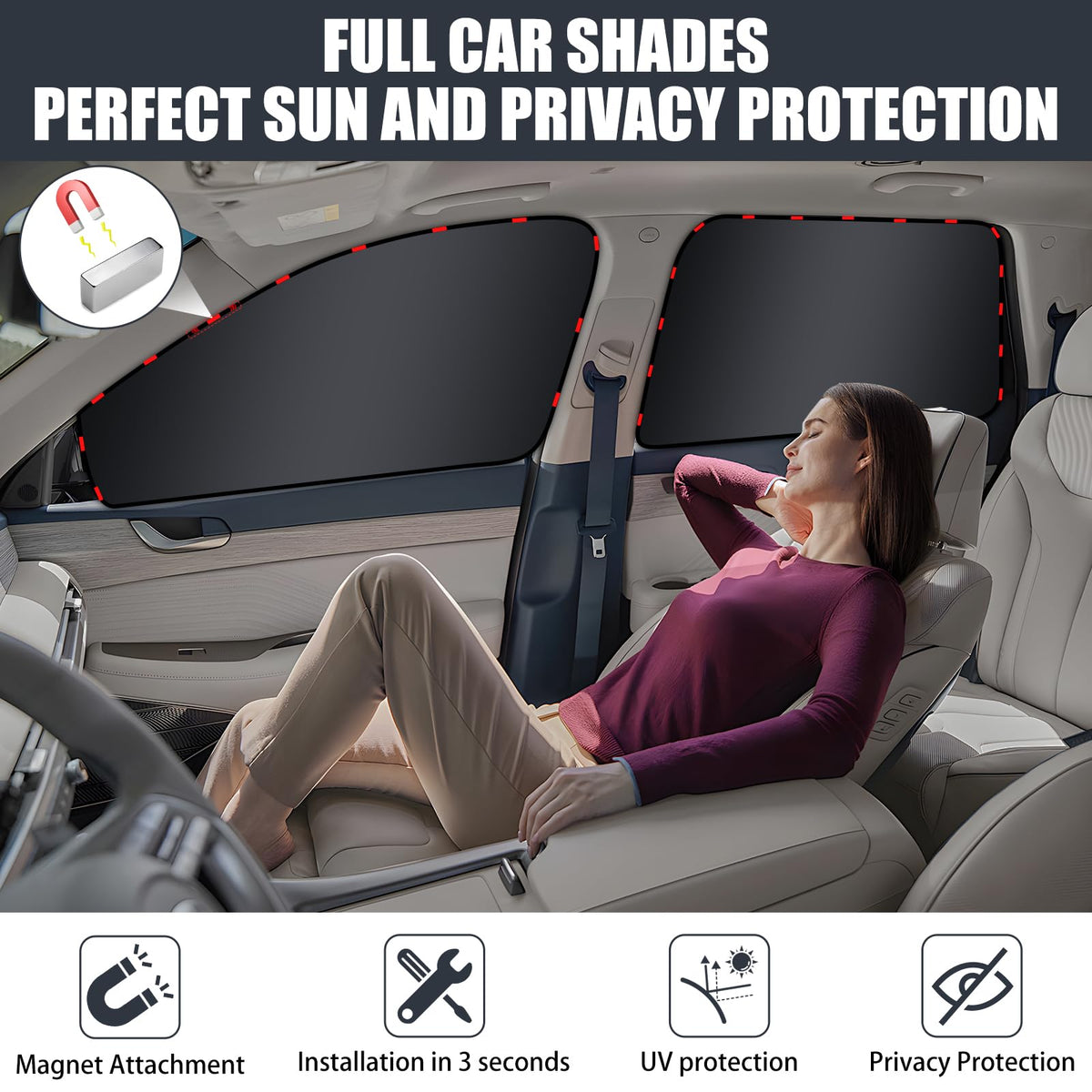 Zatooto Side Window Sun Shade - 4 Pack Car Window Covers 99% Uv Light Block Car Curtains Magnetic Side Window Sun Shade Keeps Co