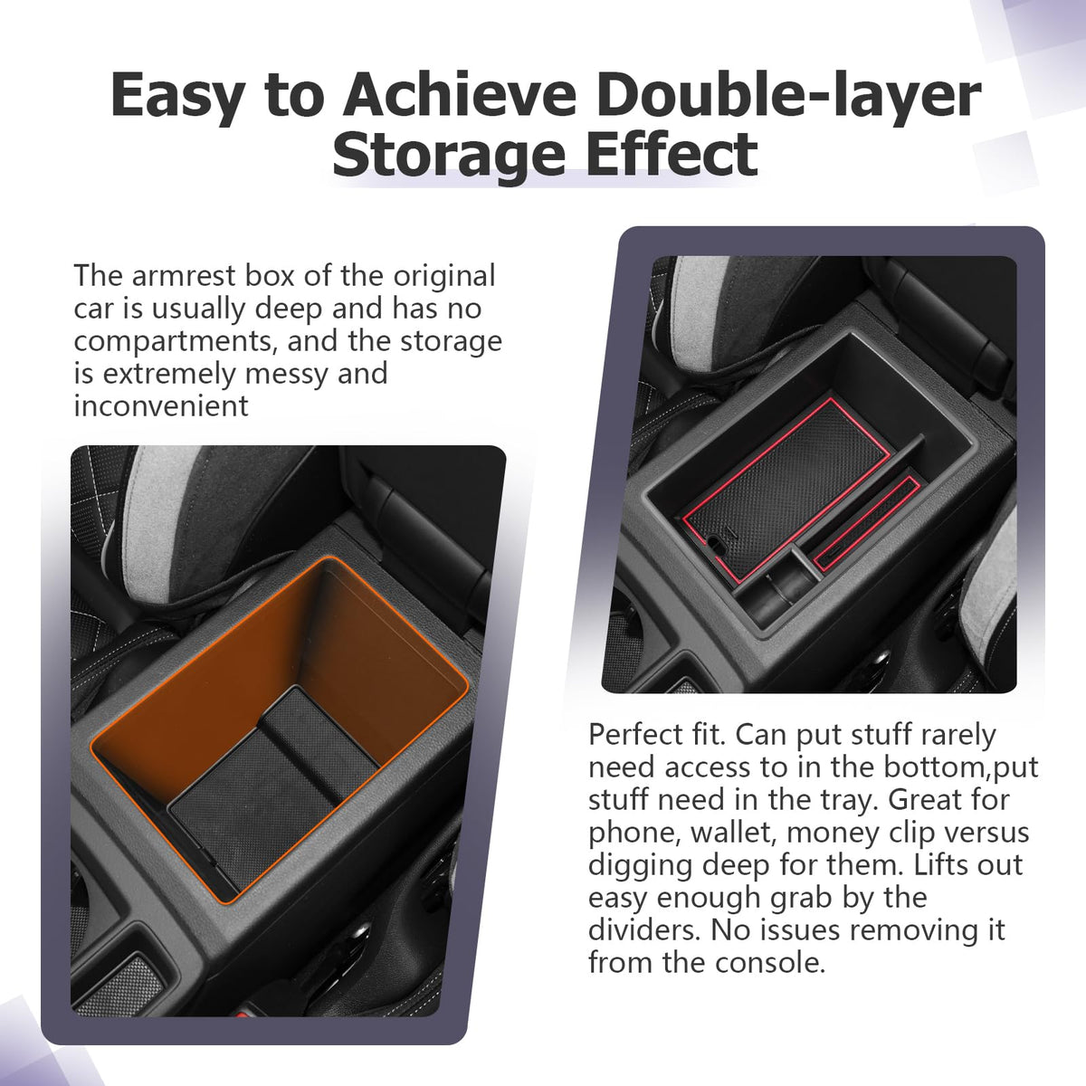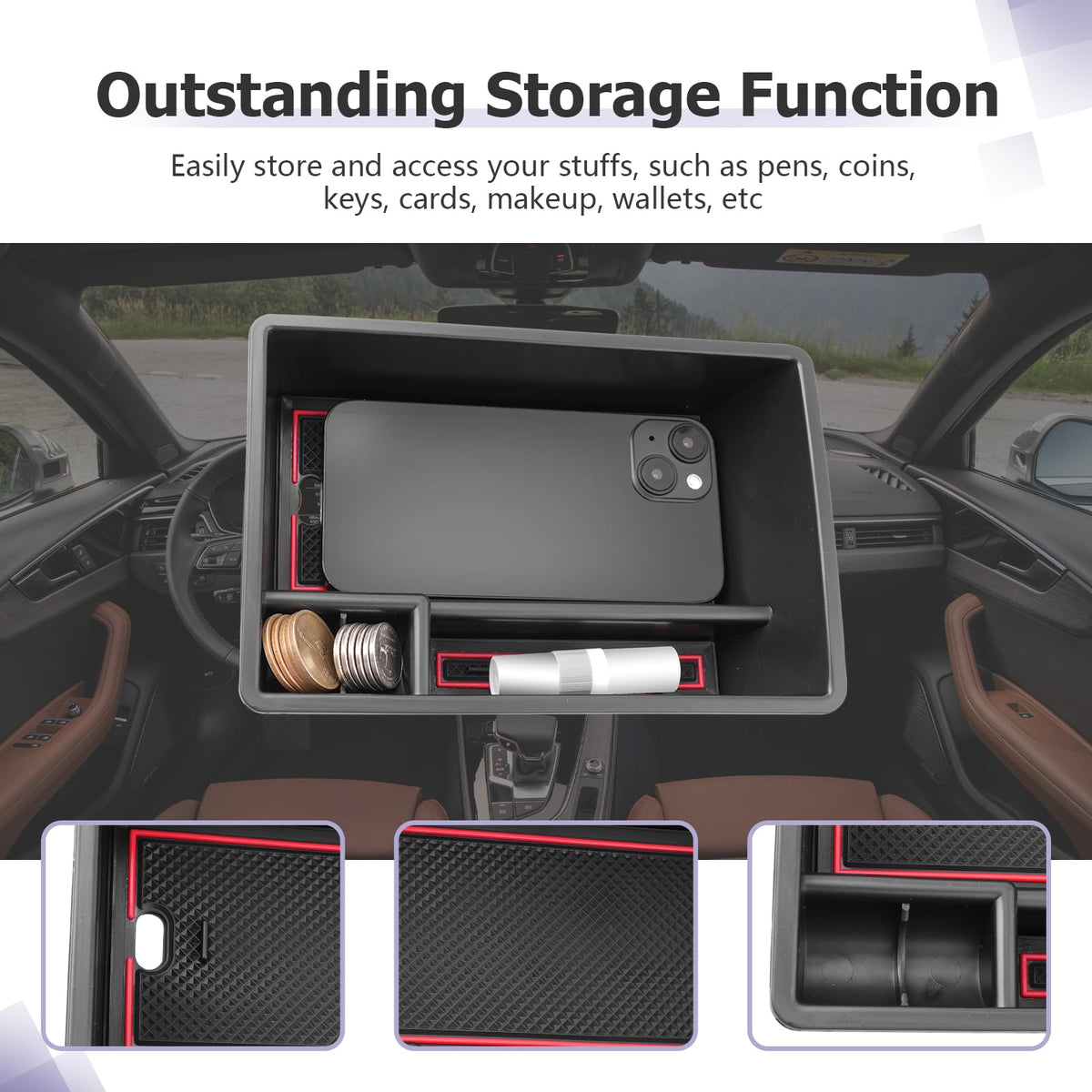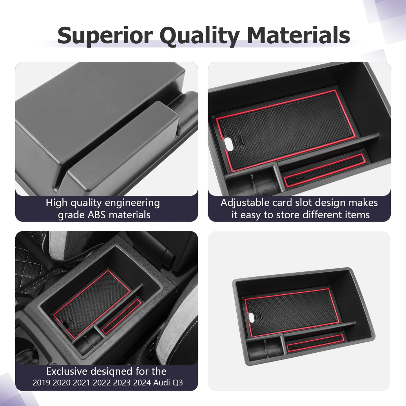 [LUWU 2019 2020 2021 2022 2023 2024 2025 Auid Q3 F3 Armrest Box Car Center Console Organizer 2019 2020 2021 2022 2023 2024 2025 Auid Q3 F3 Accessories]The car center console storage box solves the problem of space storage well, maximizes the storage space of the car center console.The armrest box organizer provides a more organized shape in your armrest storage.Transforms the organization way, with several storagecompartments, no messy again, so easier to find your everything.Well-made quality organizer, ABS black materials, increases a lot of available space and is clean and tidy. Include the rubber tray bottom liners which should make it easier to clean, avoid sliding and rattling in-tray. (Non-Slip Red Mats: More durable, more quietly)Easily install and remove, divide the center console from one into two layers, an essential accessory for the car owners.Notice:Before you make the order, make sure that your car is 2019 2020 2021 2022 2023 2024 2025 Auid Q3 F3 2nd generationPlease contact us If you met any problems during use it, we will reply to you the first time.