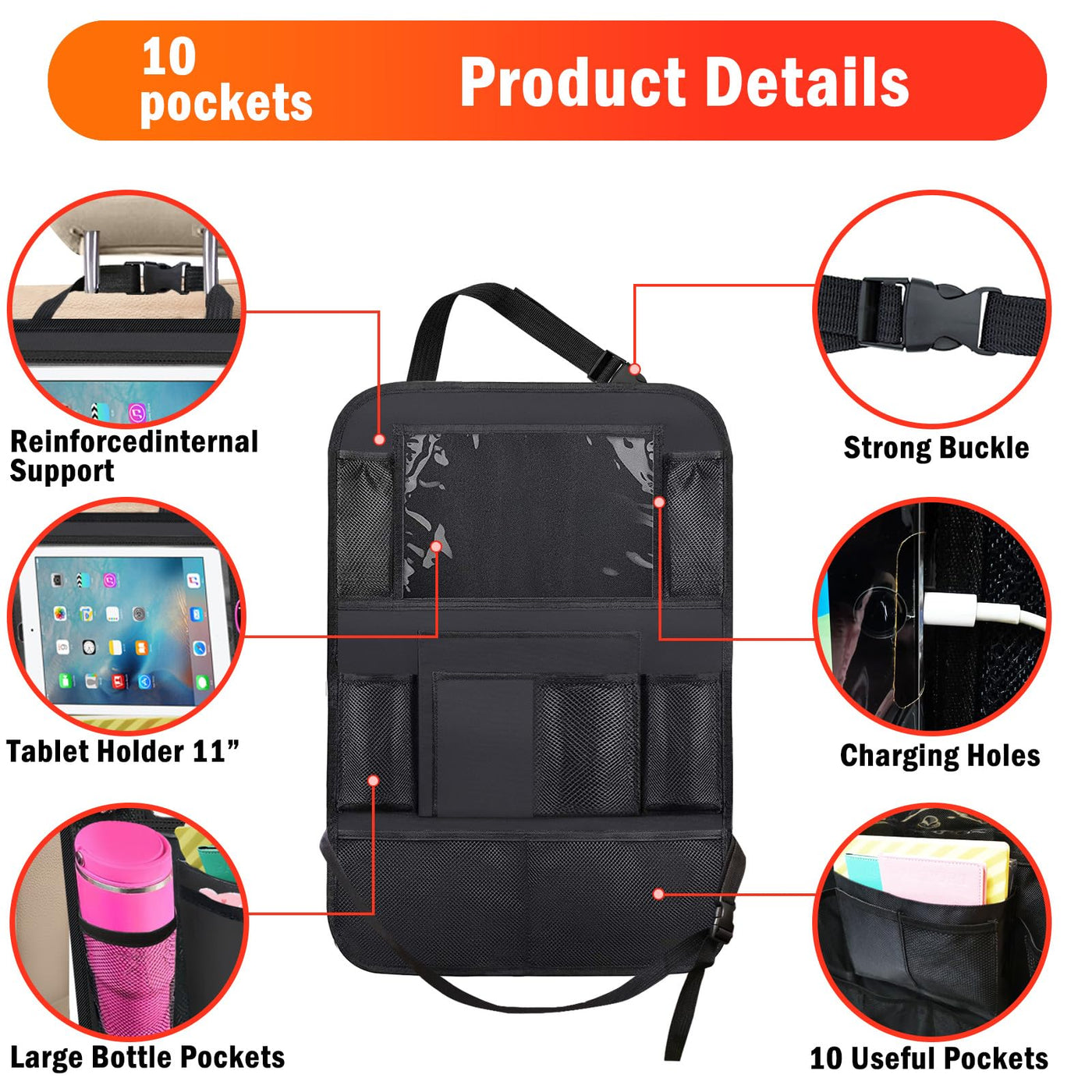 Zecirl Car Backseat Organizer ,2 Pack car organizer back seat with 11'' Tablet Holder, 10 Storage Pockets Seat Back Protectors K