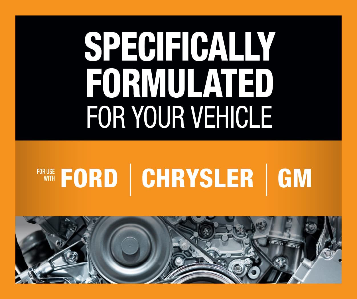 Q: What vehicles are compatible with Zerex Dex-Cool Antifreeze/Coolant?A: Zerex Dex-Cool Antifreeze/Coolant is approved for use in GM, Ford, Chrysler, and SAAB vehicles that require an orange antifreeze with Organic Acid Technology (OAT).